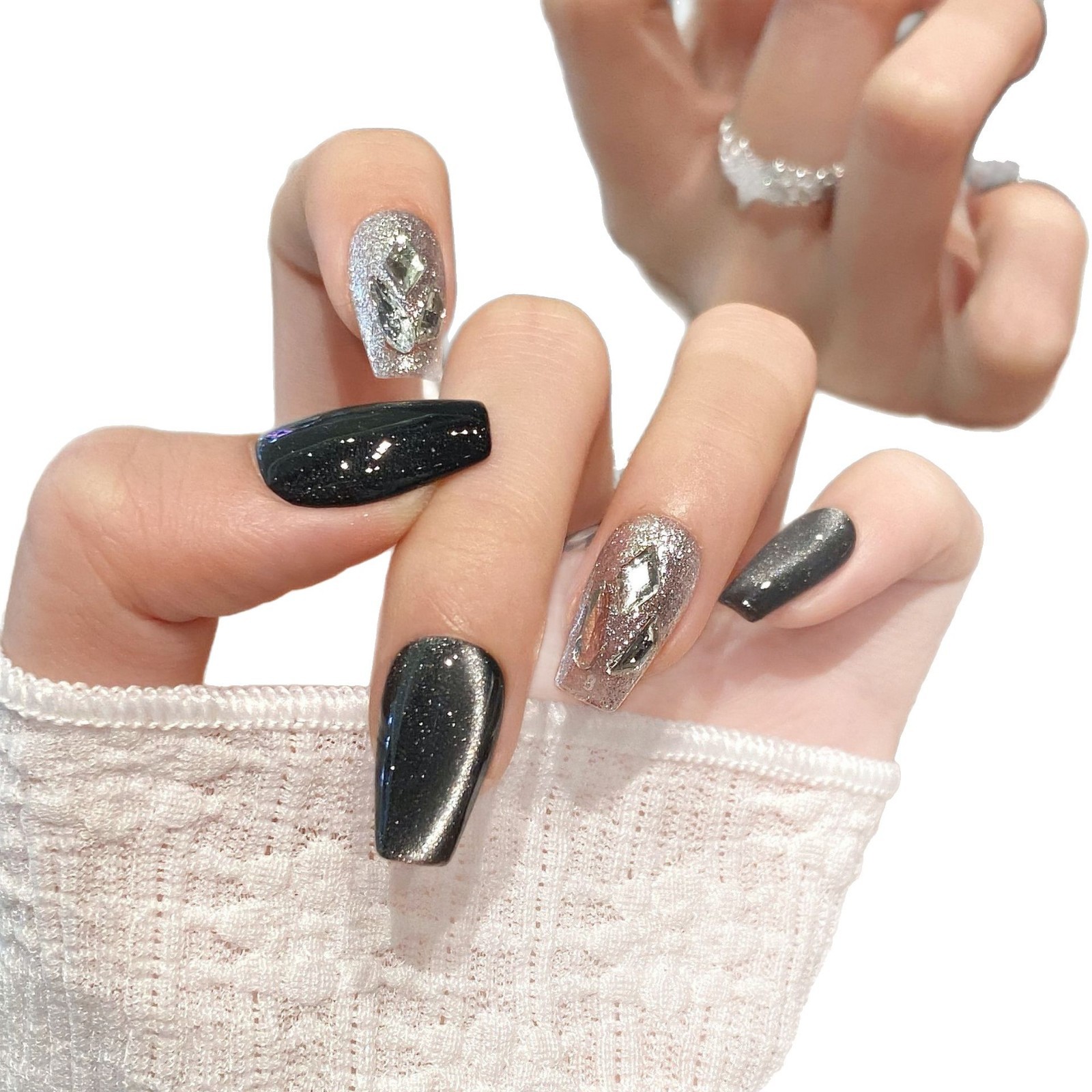 艺禾美甲 黑骑士手工穿戴甲轻奢秋冬显白气质猫眼爆闪钻可拆卸