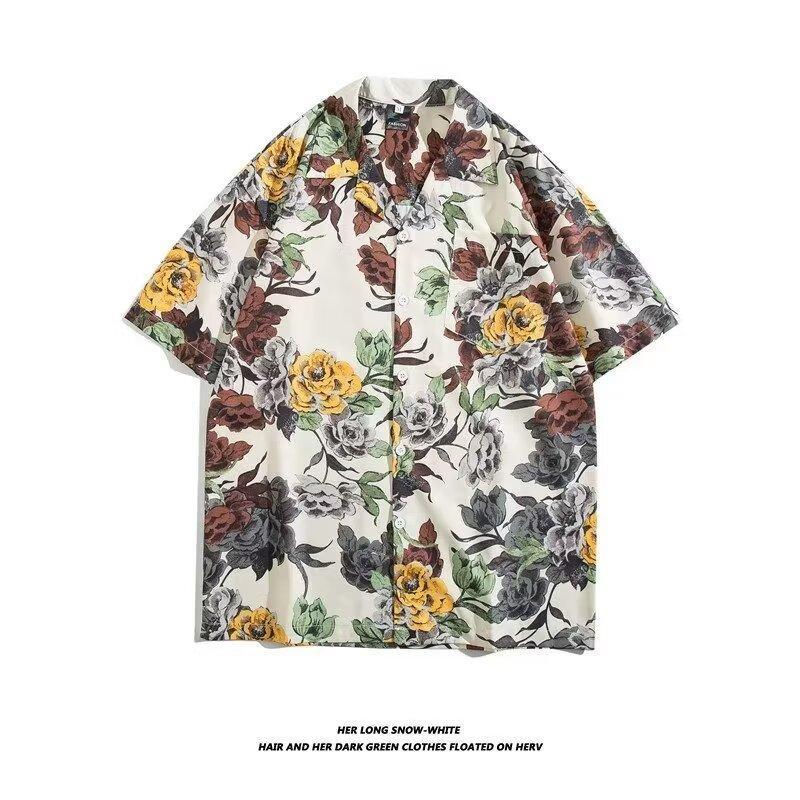 痞帅花衬衫男短袖夏季潮牌小众设计感五分袖衬衣夏威夷风休闲上衣