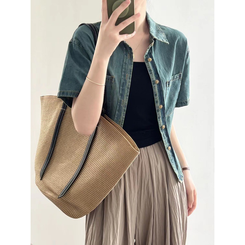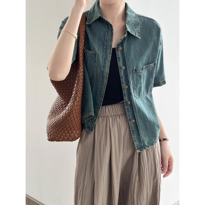 气质复古短袖牛仔衬衫外套女装夏季短款韩版宽松时尚衬衣