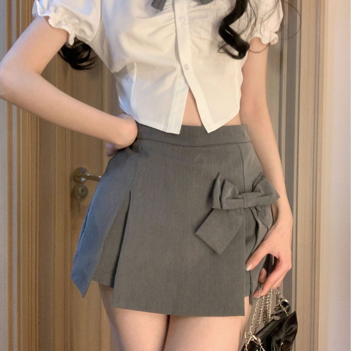 蝴蝶结半身裙女夏季小个子设计感西装高腰短裙子a字裤裙独特别致