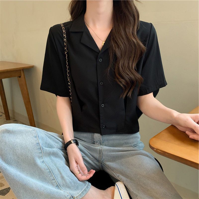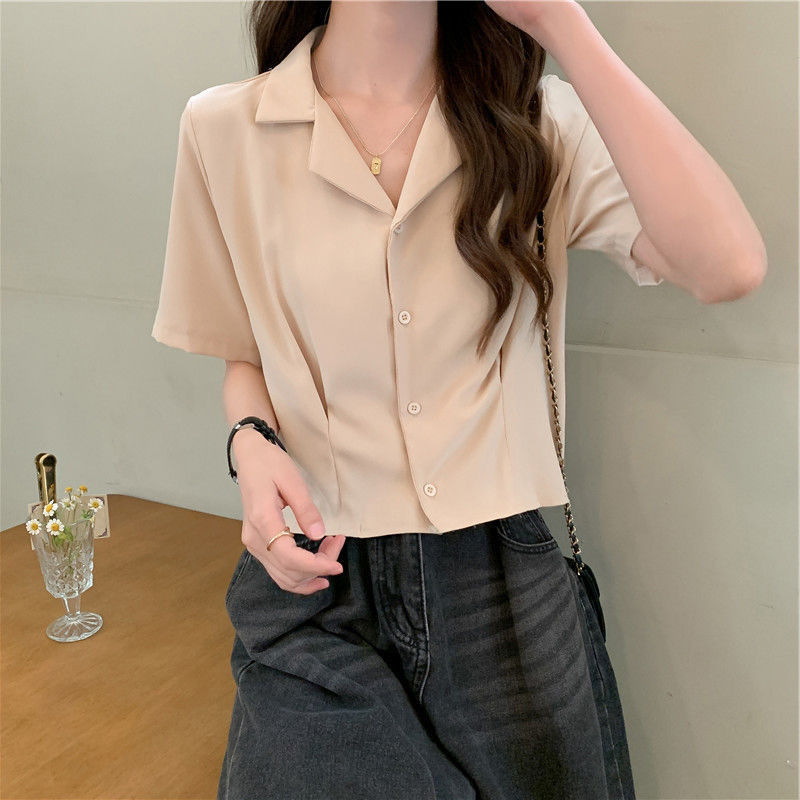短上衣女夏夏季新款领衬衫小个子复古法式设计感短款上衣