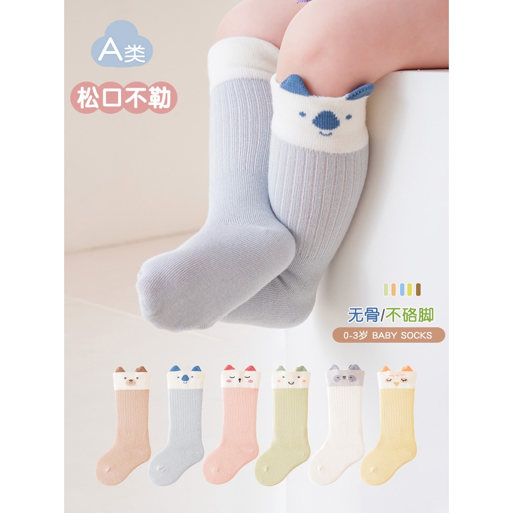婴儿袜子春秋0-3个新生儿中长筒棉袜男女童胖宝宝膝盖袜中筒