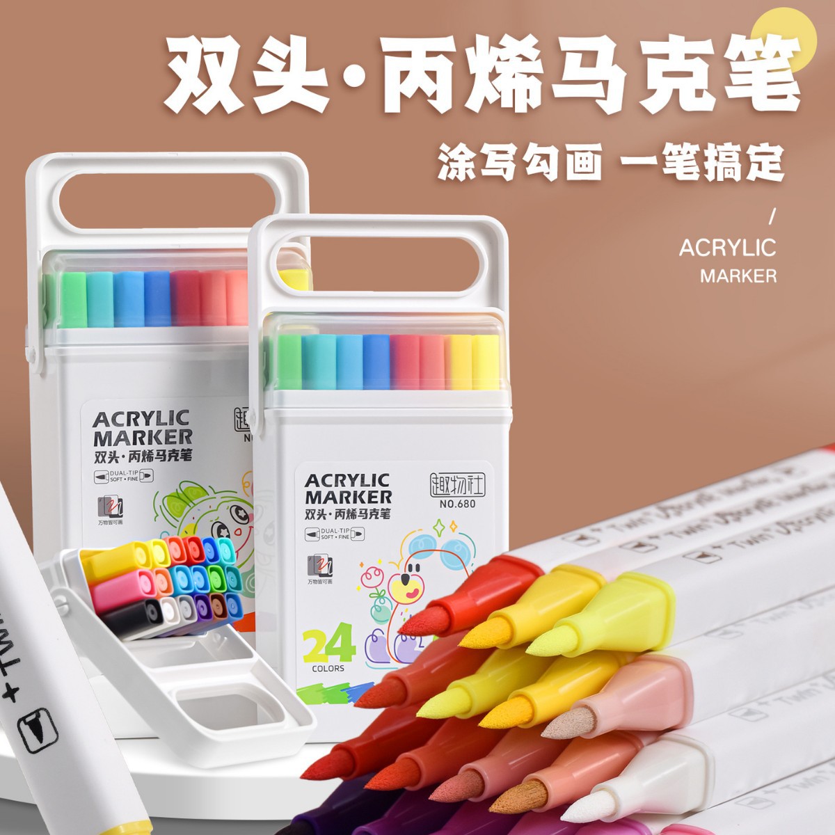 双头方杆丙烯马克笔不透色可叠色手提软头彩色绘画笔套装