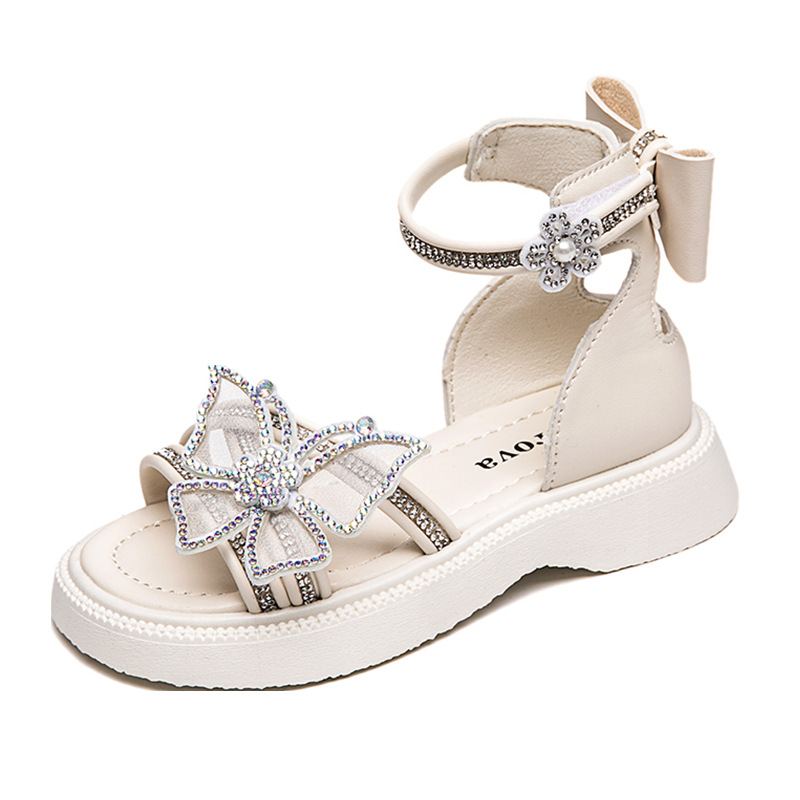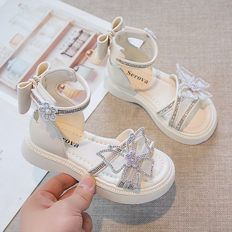 学生女童凉鞋2025新款夏季小女孩时尚女童鞋软底蝴蝶结水钻公主鞋