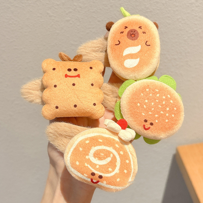 咖色卡通可爱汉堡发夹女刘海夹吐司面包毛绒发卡儿童碎发bb夹头饰