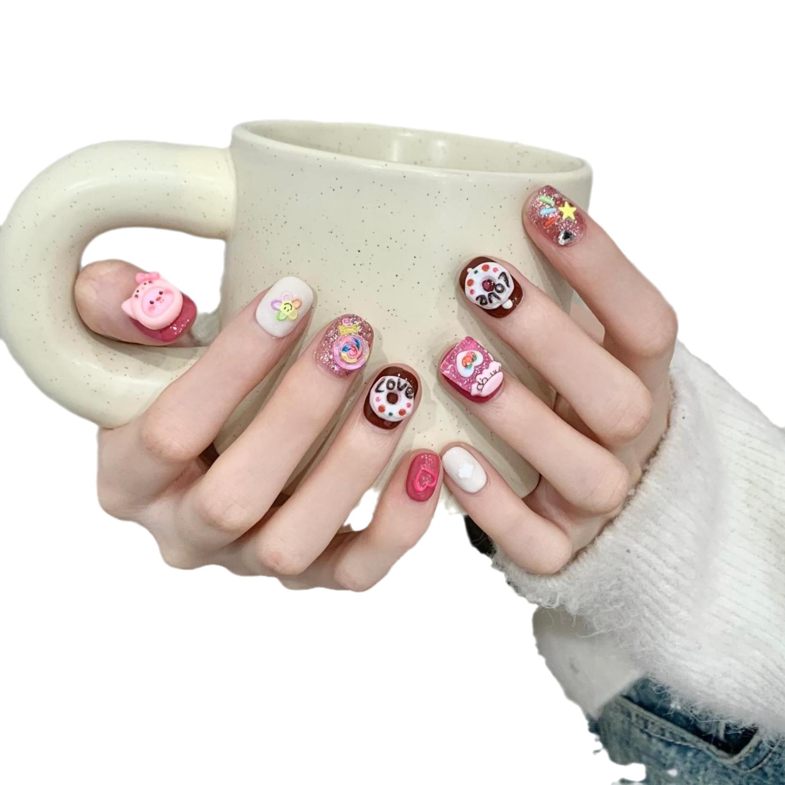 手工穿戴甲短款美甲光疗甲指甲片高级感小众ins百搭精致可拆卸的