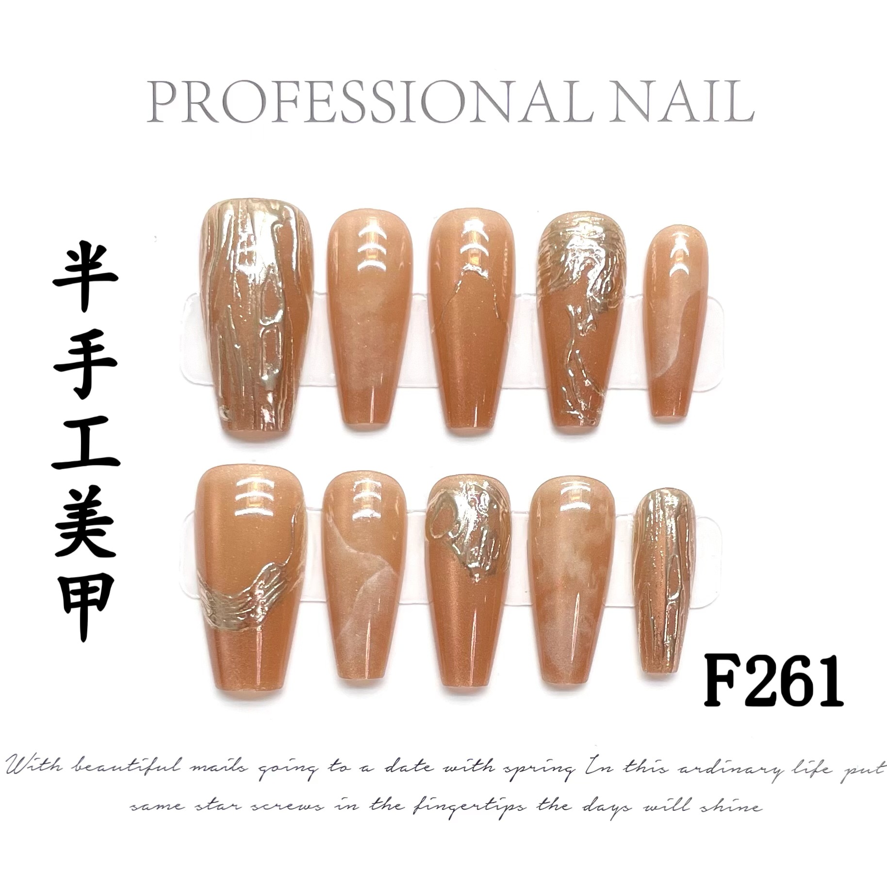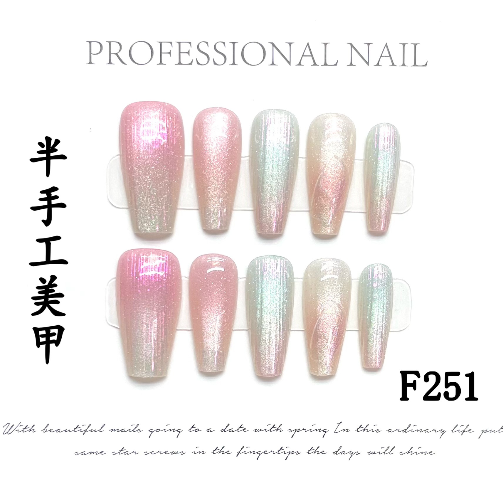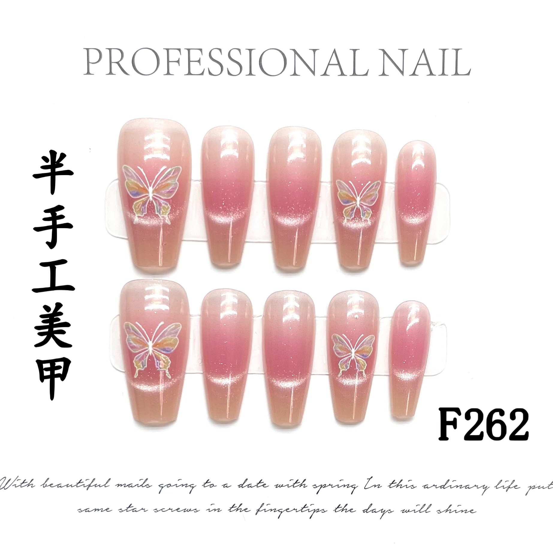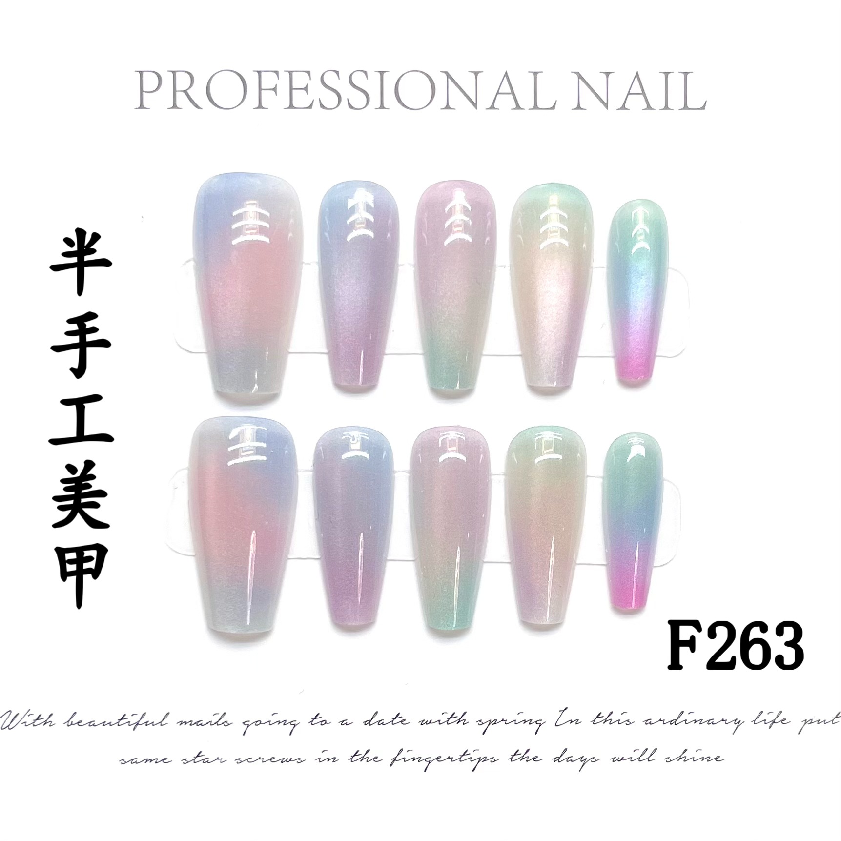 【半手工穿戴甲】长款短款预制甲片美甲假指甲可拆卸批发十片装