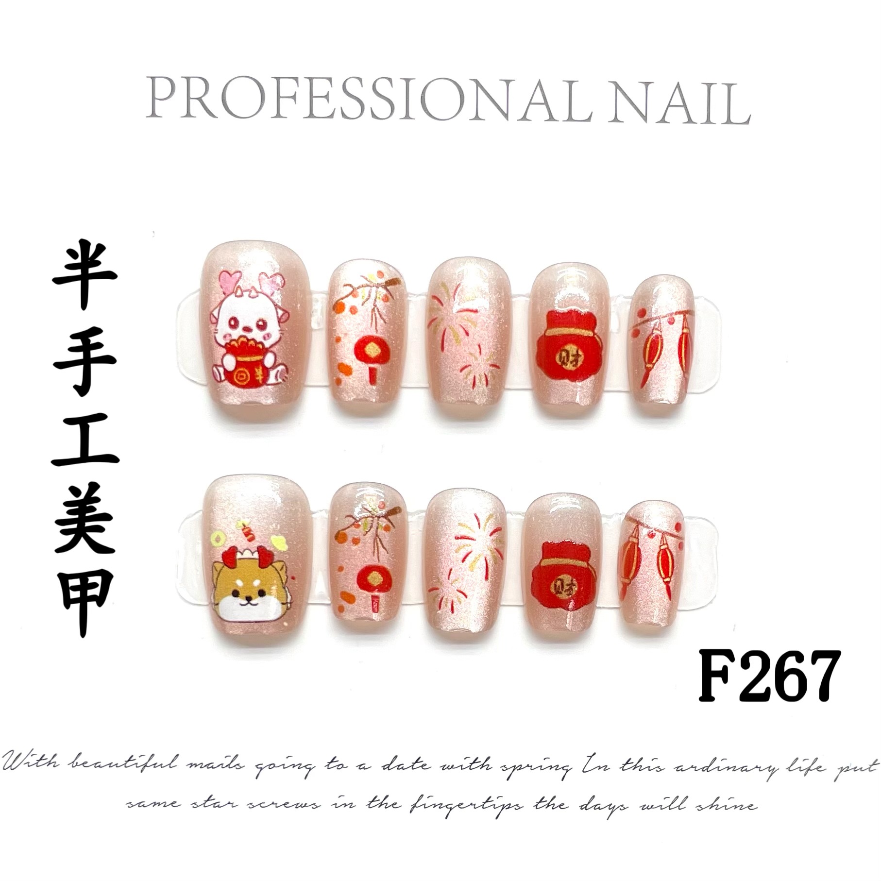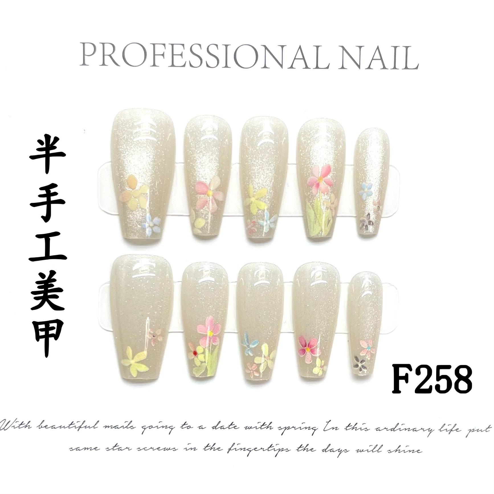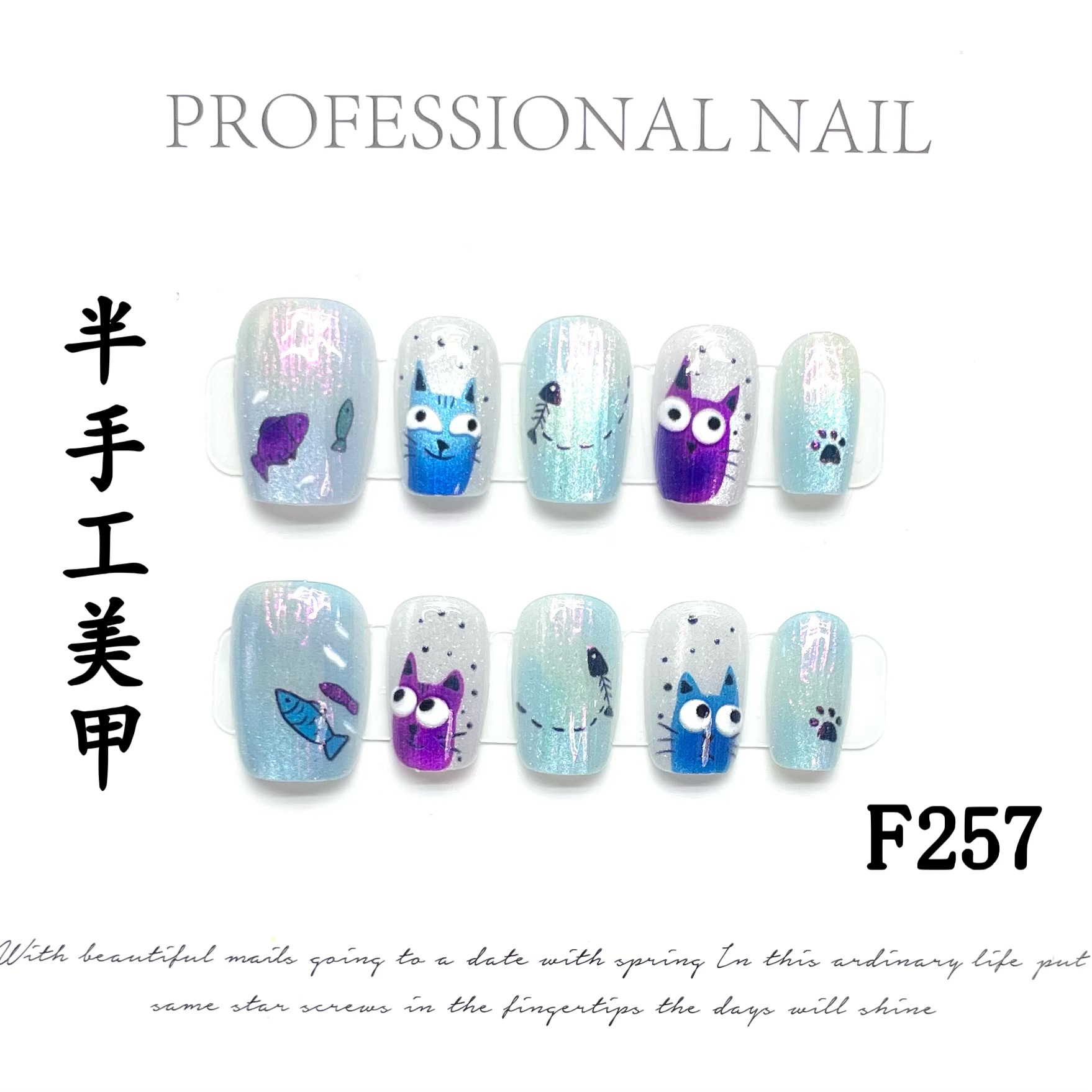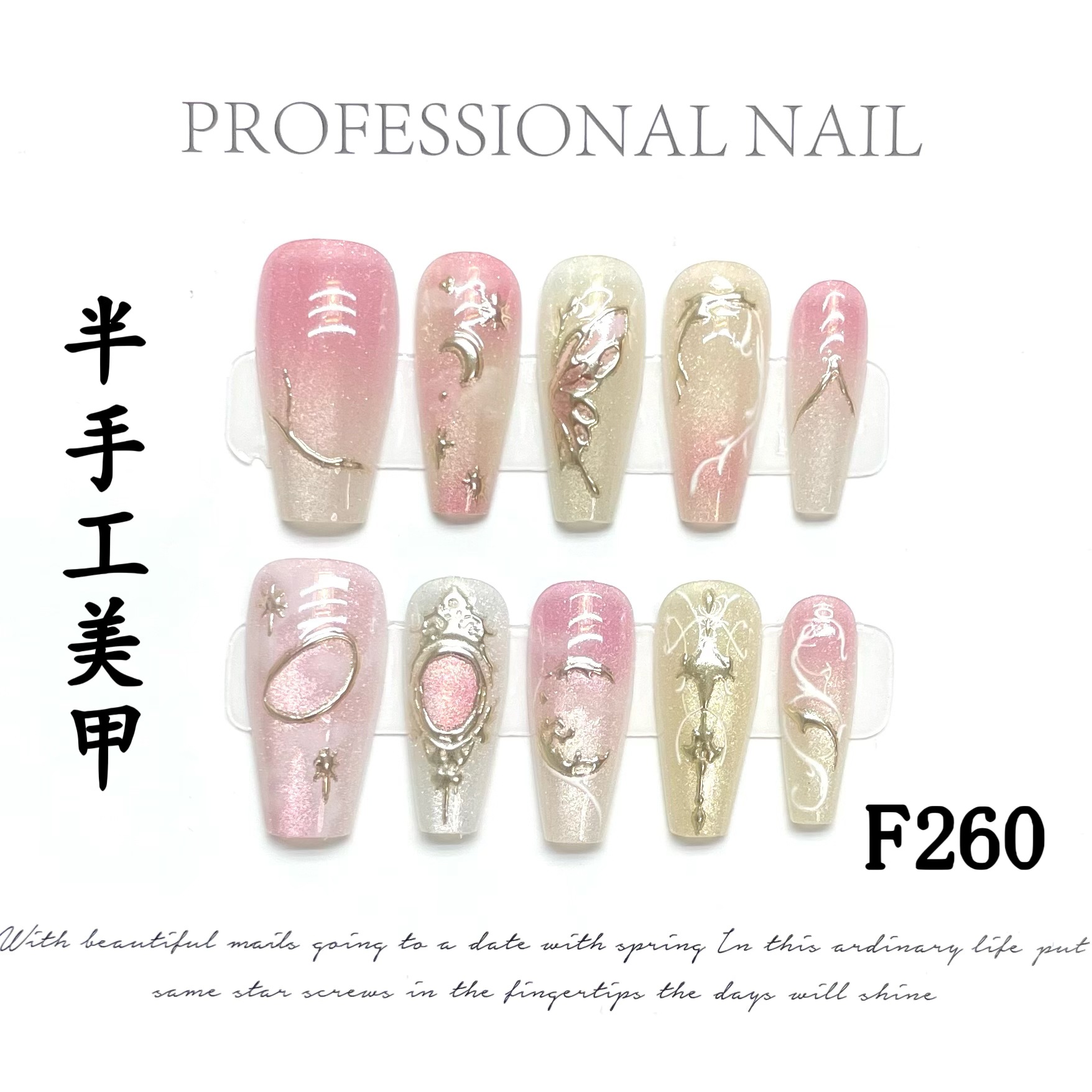 【半手工穿戴甲】长款短款预制甲片美甲假指甲可拆卸批发十片装