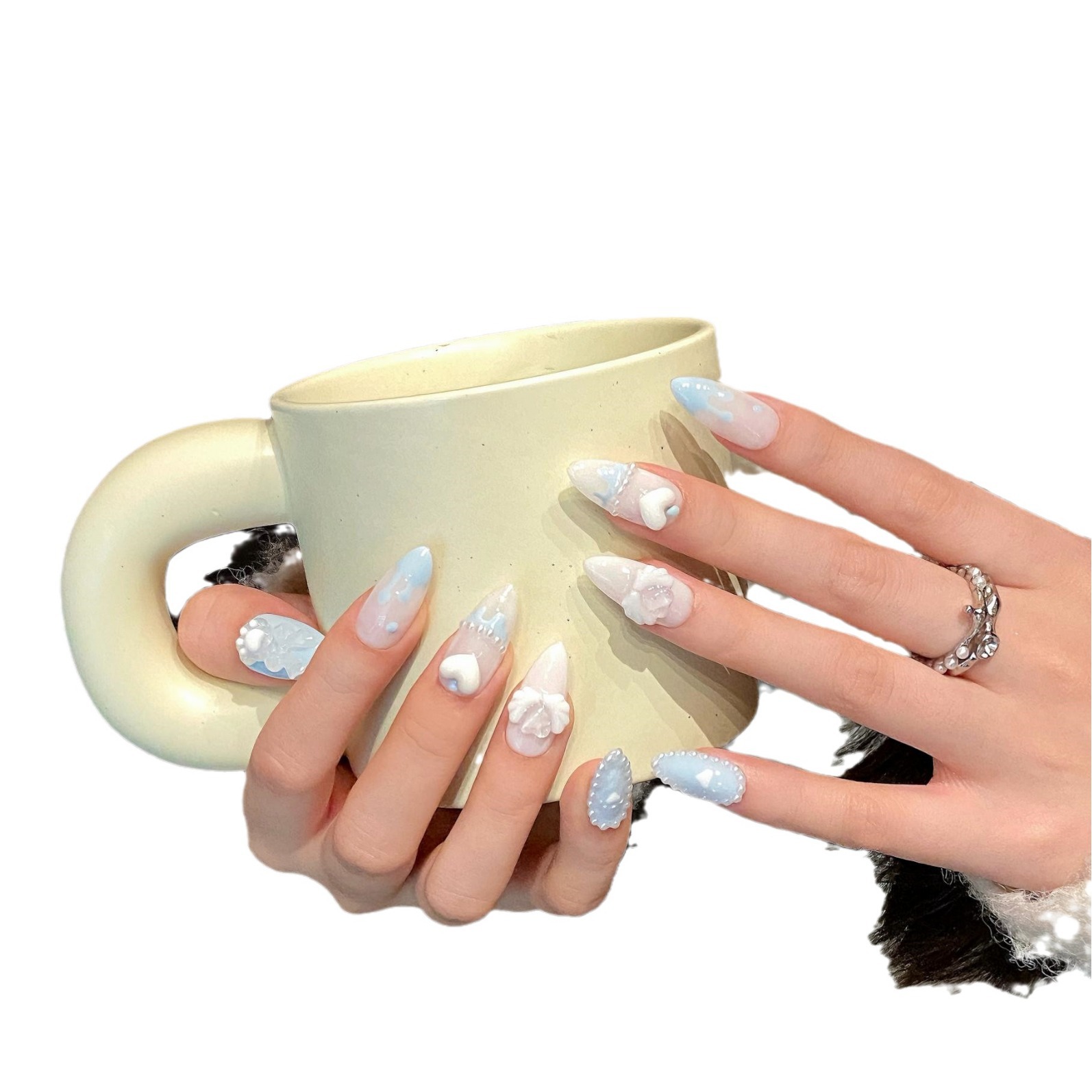 暴兔丸手工美甲 甜酷 风蓝色可爱蝴蝶结猫爪穿戴甲成品贴片百搭款