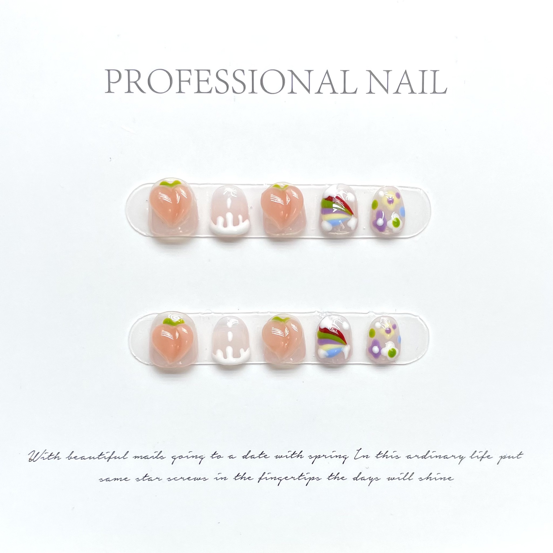 【儿童专用】阳光彩虹小桃子温柔甜美小仙女爆款穿戴美甲指甲贴