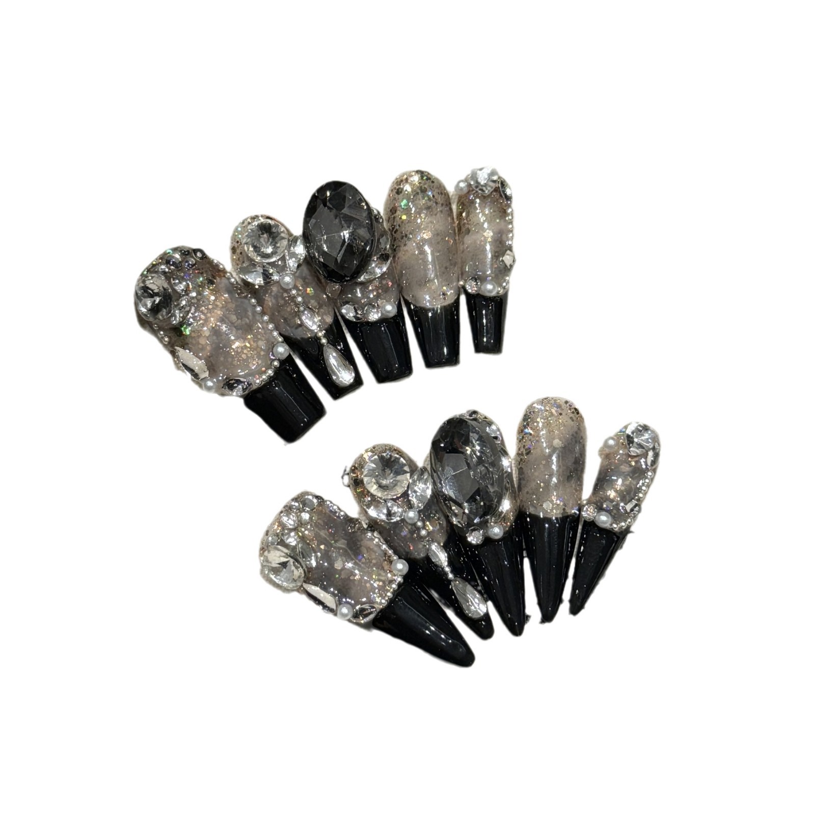 艺禾纯手工穿戴甲黑色法式轻奢风暗黑辣妹满钻深夜繁星爆闪大钻
