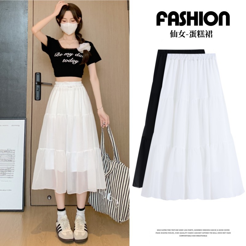 白色半身裙女夏薄款新款高腰显瘦中长款a字芭蕾风蓬蓬蛋糕裙