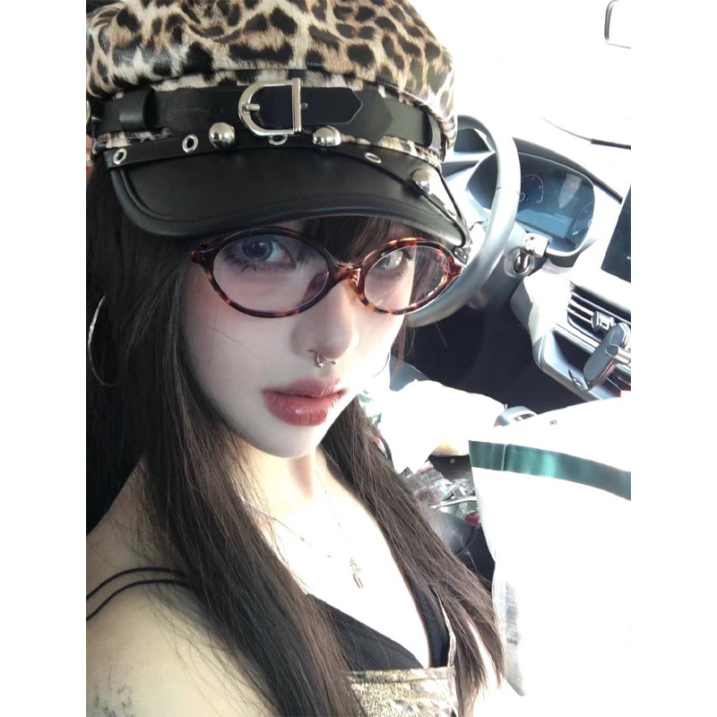 街头辣妹风铆钉皮带装饰豹纹报童帽女复古个性显脸小贝雷帽八角帽