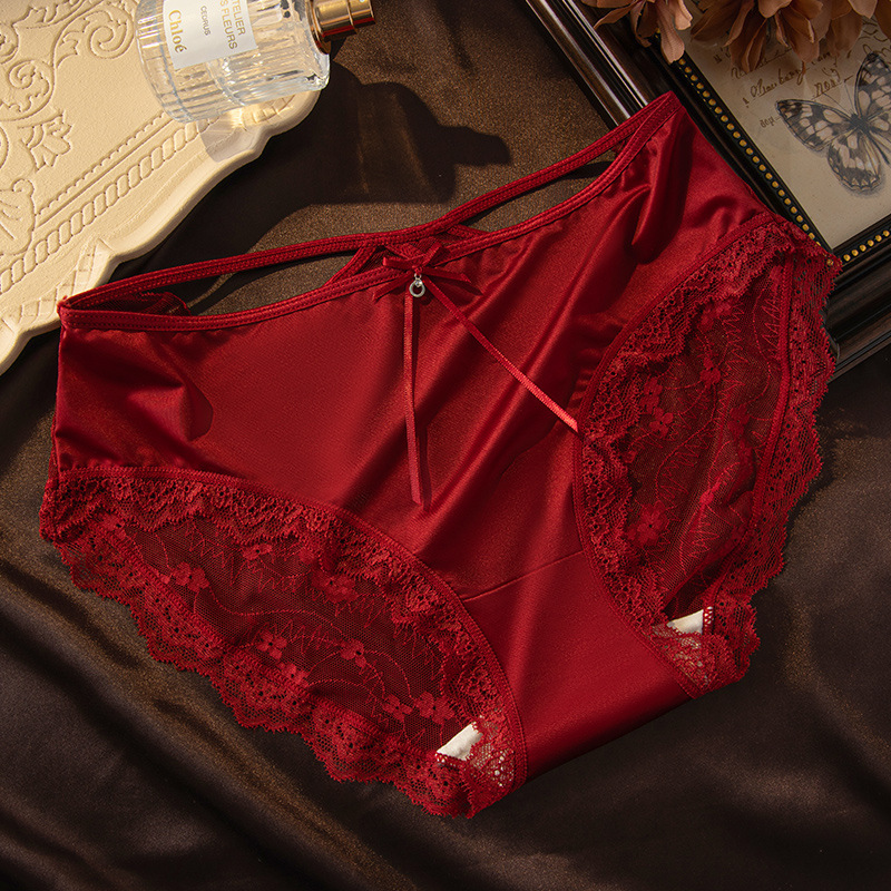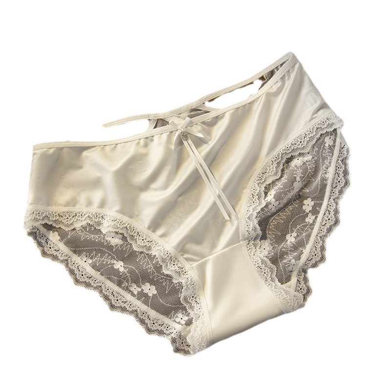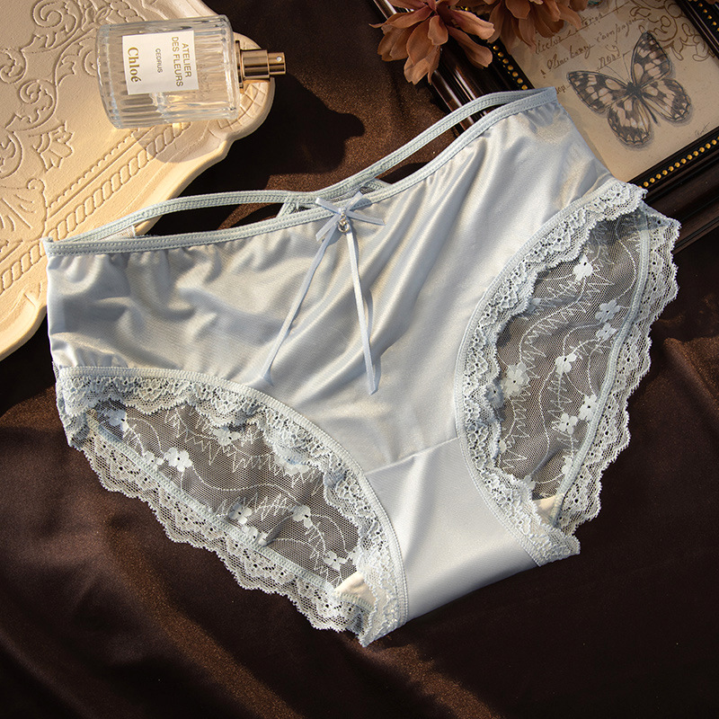 性感蕾丝高级感流光缎面小设计女士内裤网纱法式桑蚕丝裆三角裤女