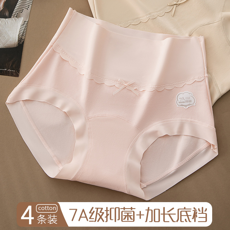 7A抑菌全棉高腰无痕包臀内裤女亲肤透气纯色加长裆纯棉女士三角裤