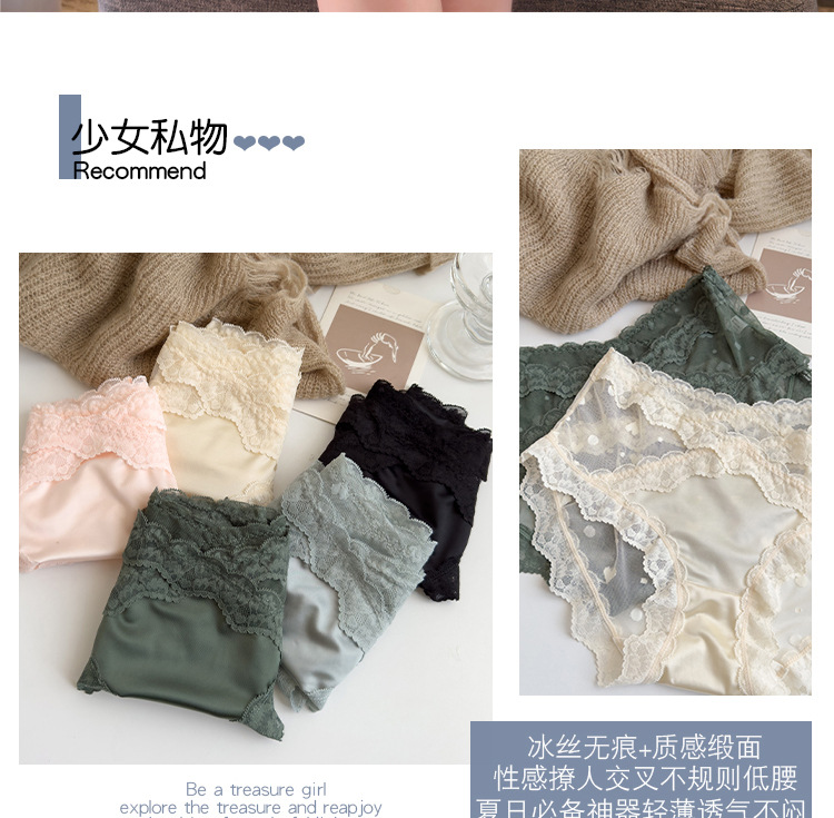 性感法式蕾丝断面光滑高档女士内裤纯欲无束缚裸感轻薄透气三角裤