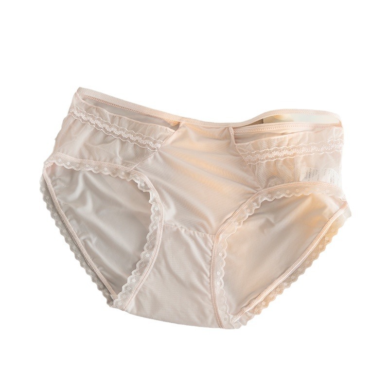 日系小清新蕾丝女士内裤丝绸缎面柔软性感诱惑冰丝纯棉裆部三角裤