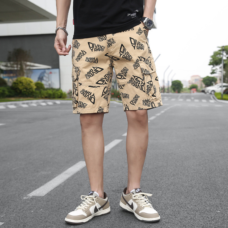 夏季新款工装短裤男美式潮牌印花中裤宽松直筒休闲百搭五分沙滩裤