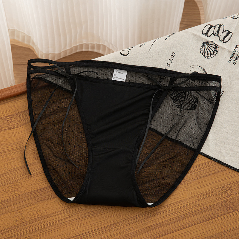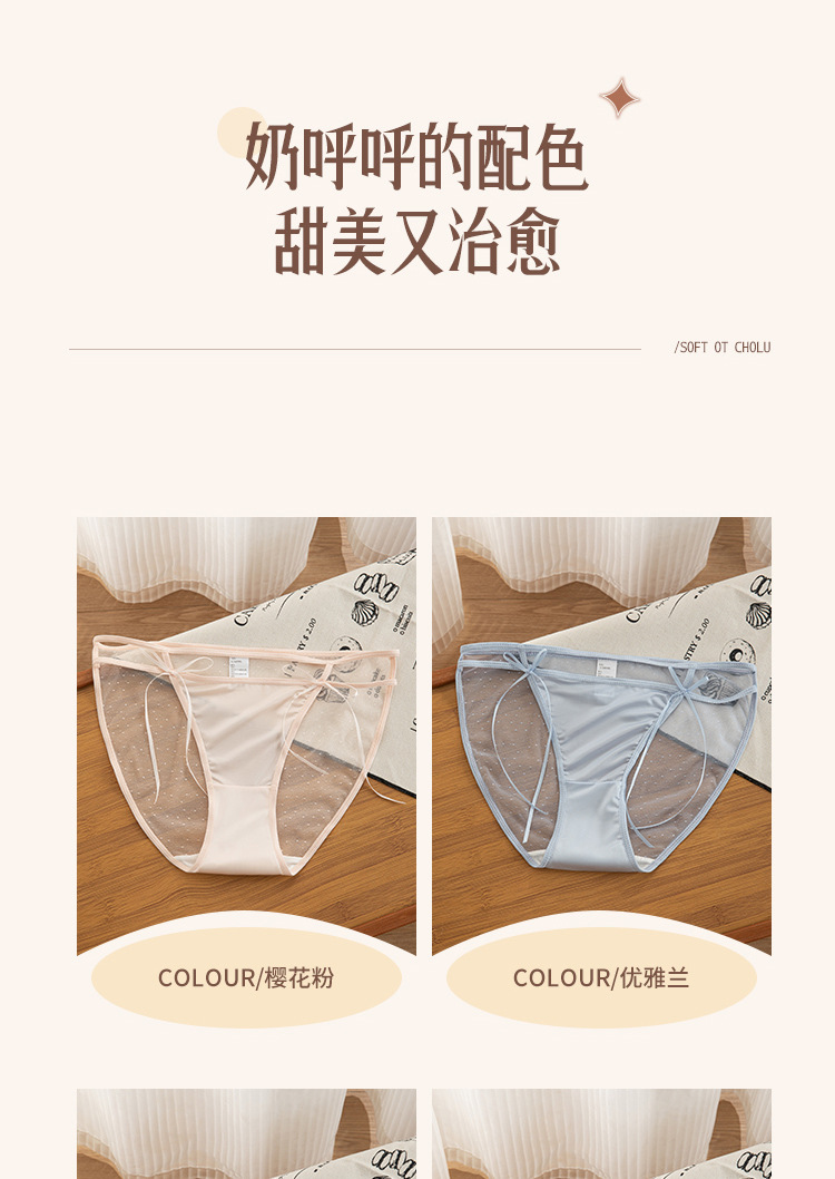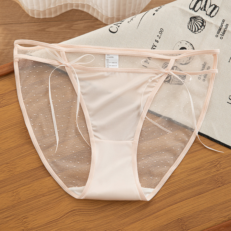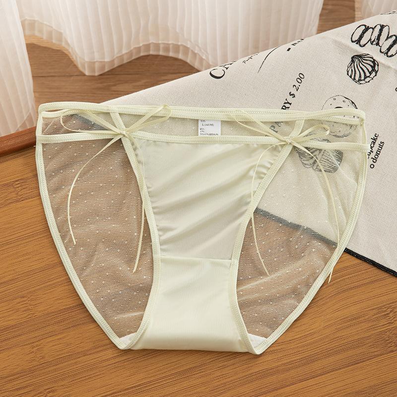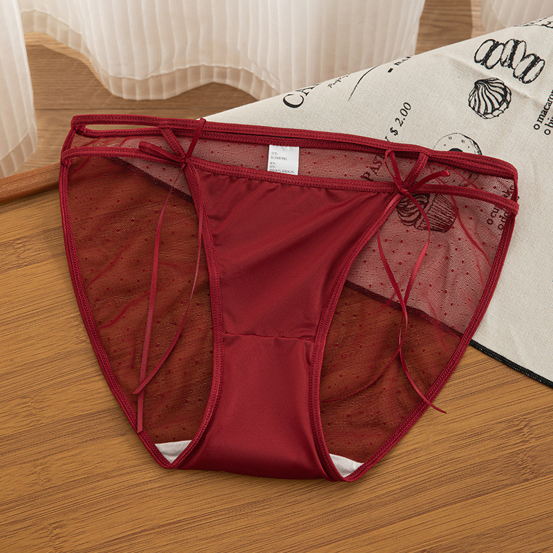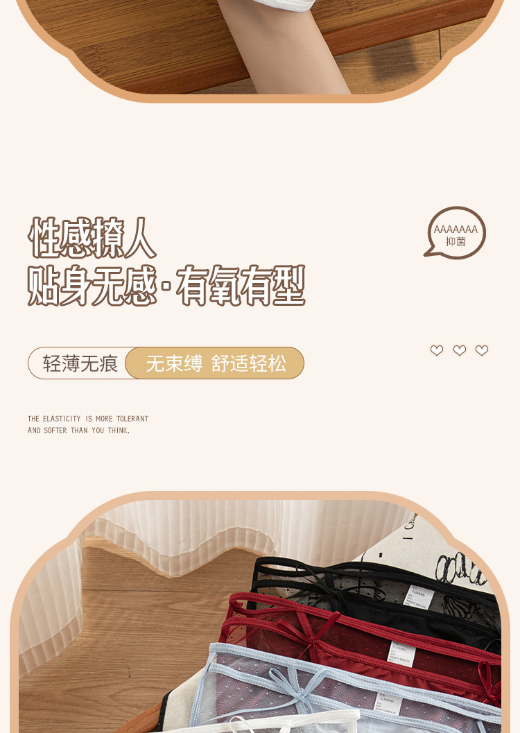 性感蕾丝纯欲低腰镂空设计感内裤女士小心机蝴蝶结桑蚕丝裆三角裤
