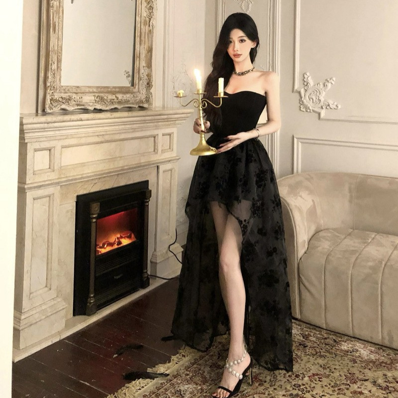 实拍圣诞节元旦节年会礼服连衣裙性感御姐女王束腰修身网纱长裙子