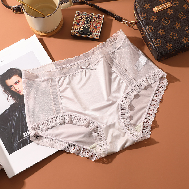 无痕高腰蝴蝶结蕾丝性感女士内裤缎面丝滑透气裸感法式轻奢三角裤