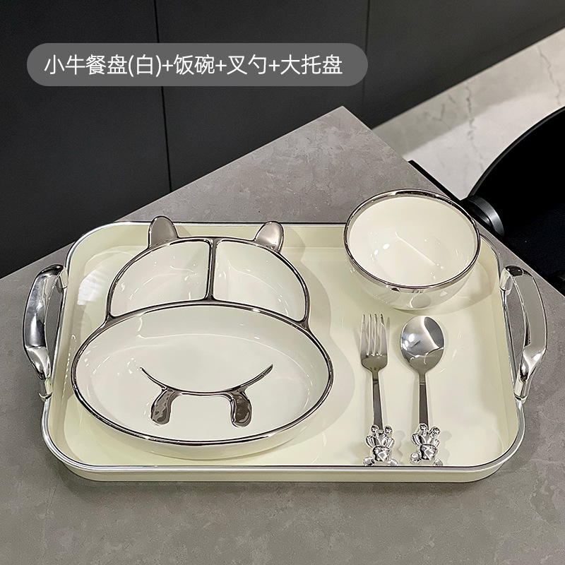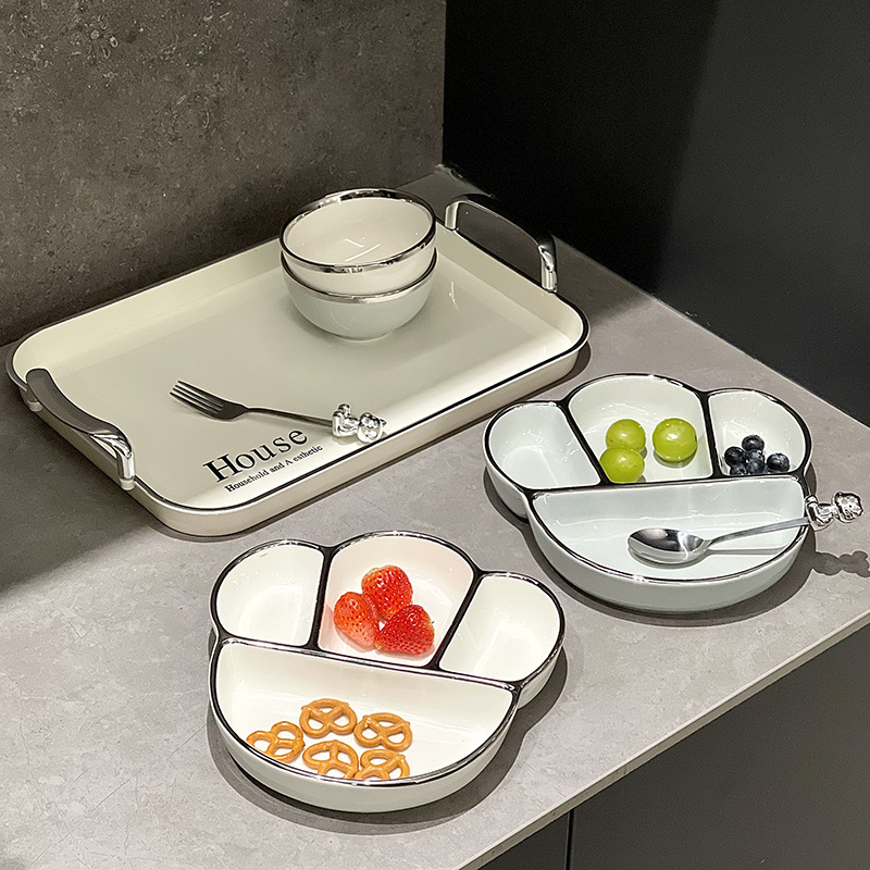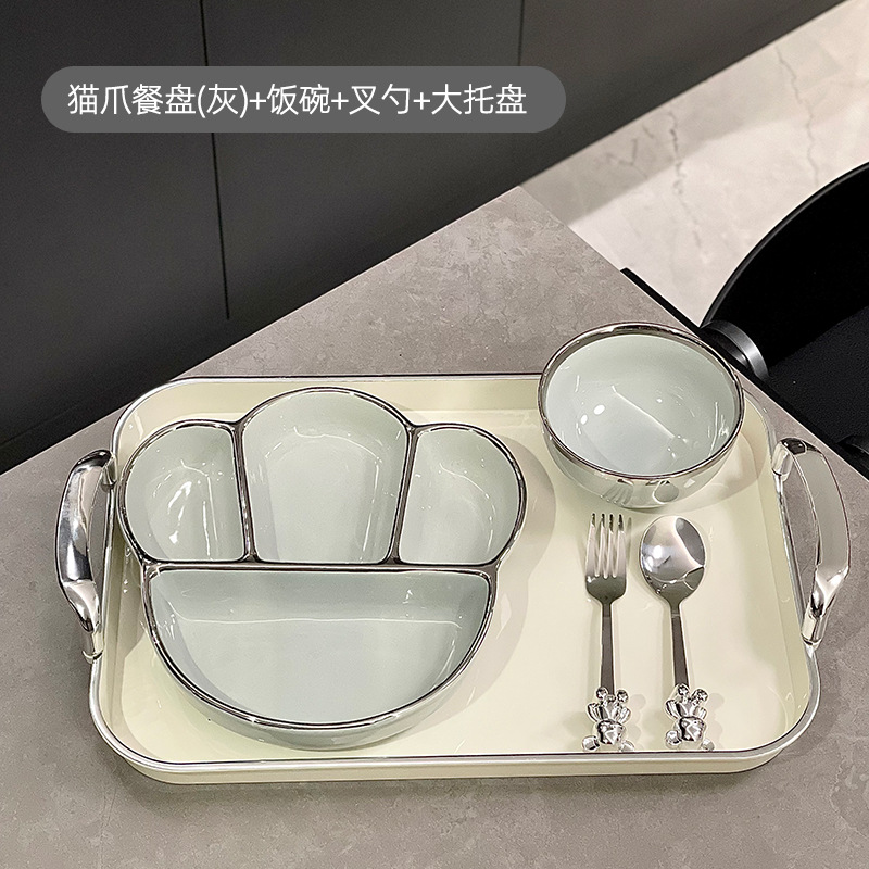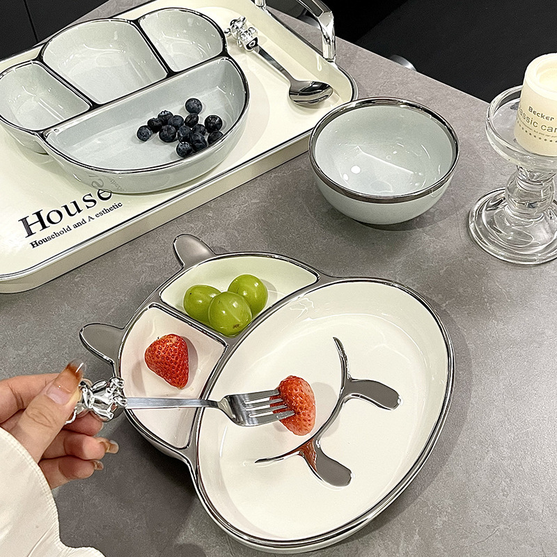 陶瓷分格餐盘儿童大人减肥专用可爱分菜盘一人食分餐制月子餐盘