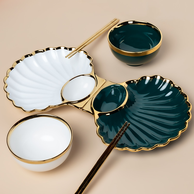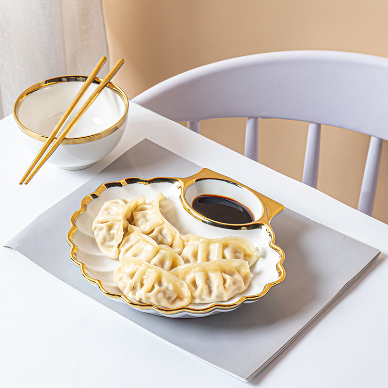 白色贝壳饺子盘