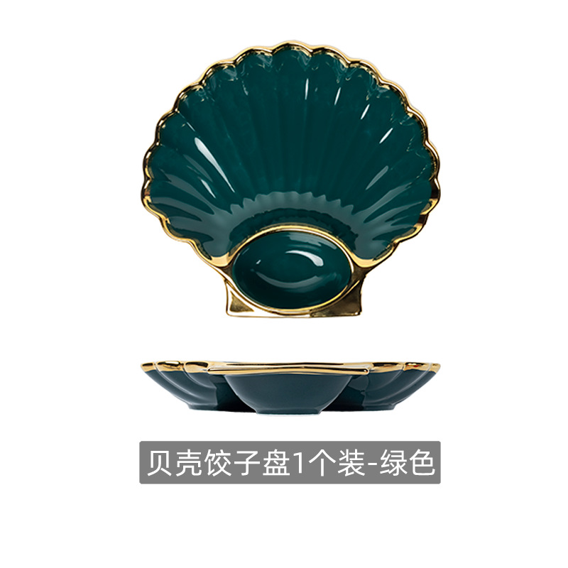 绿色贝壳饺子盘