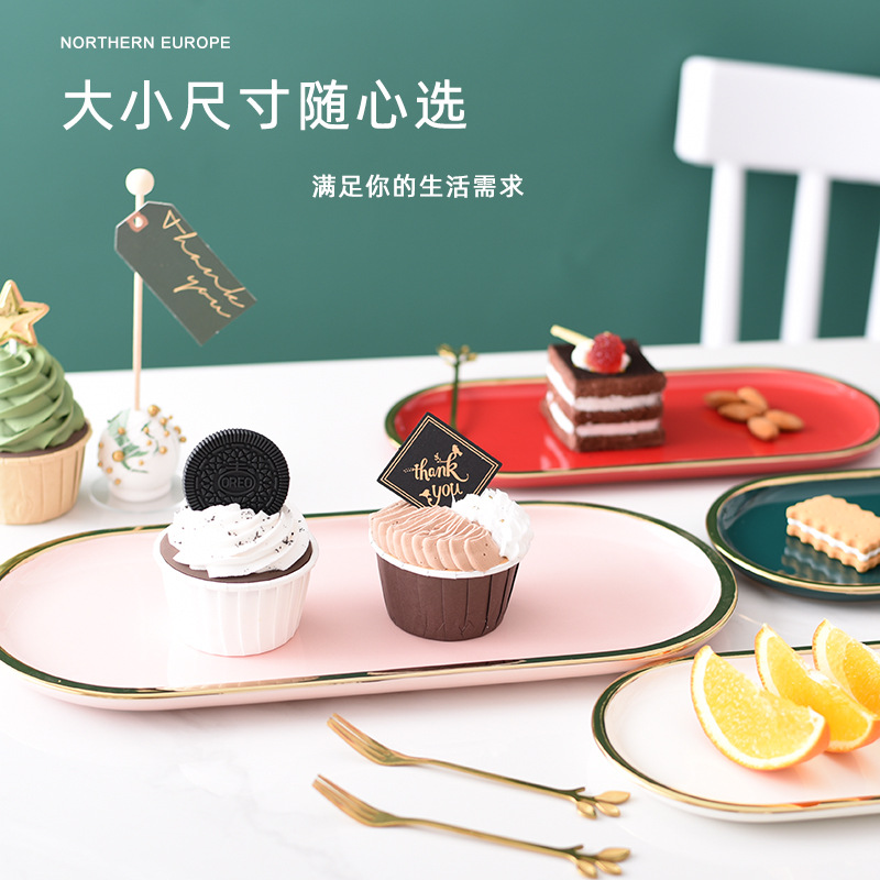 轻奢高档金边陶瓷盘首饰收纳盘点心盘创意家用甜品盘蛋糕盘寿司盘