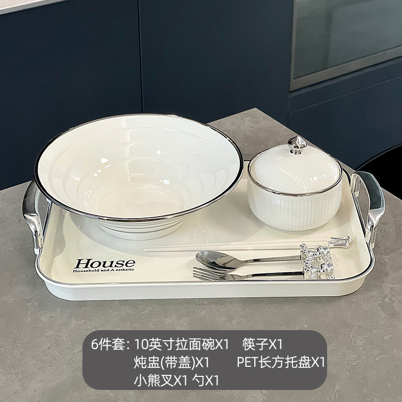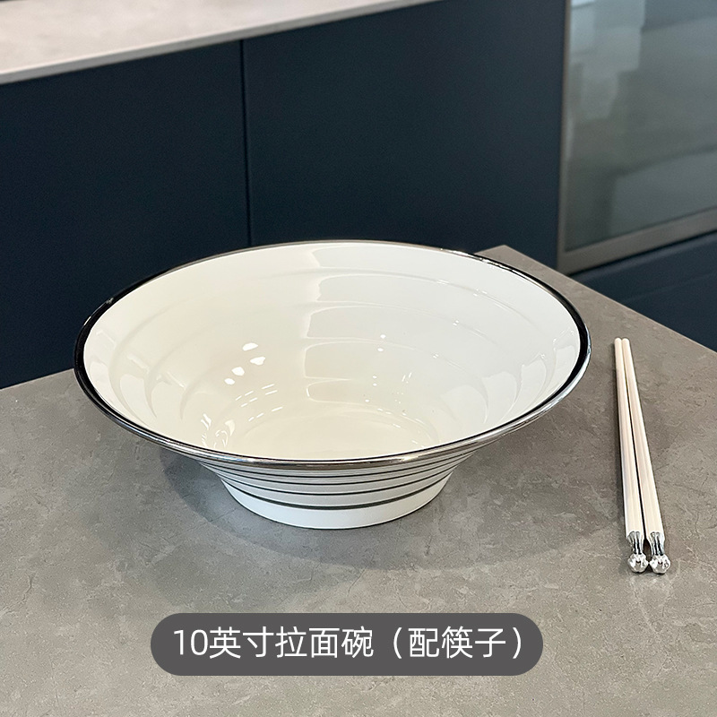 10英寸拉面碗-银边白(配筷子)