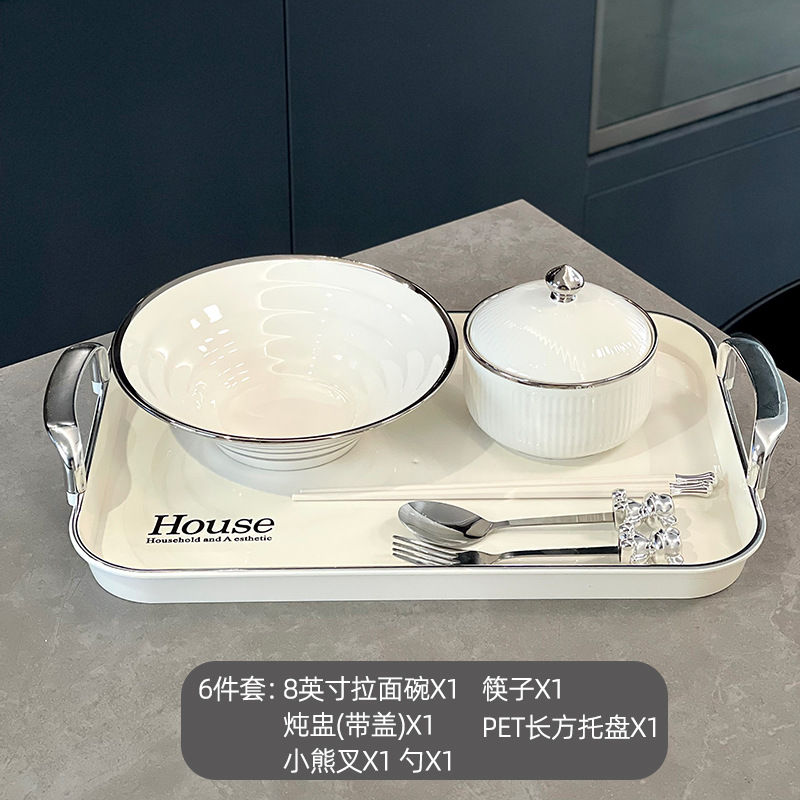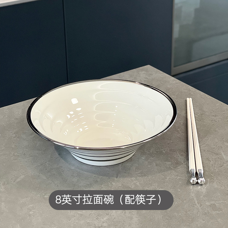 8英寸拉面碗-银边白(配筷子)