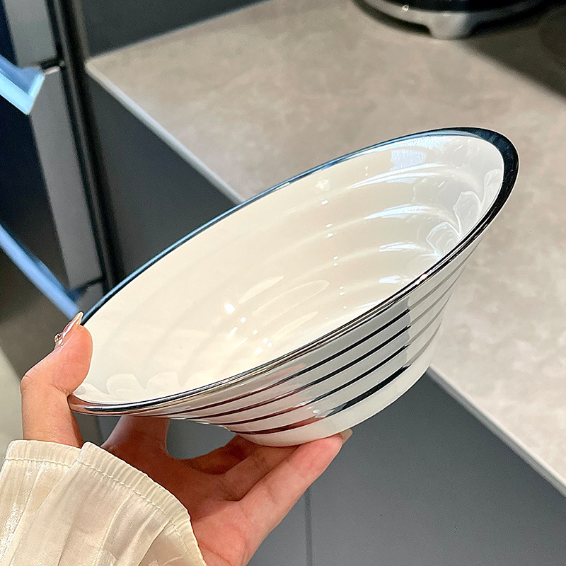 8英寸拉面碗-银边白