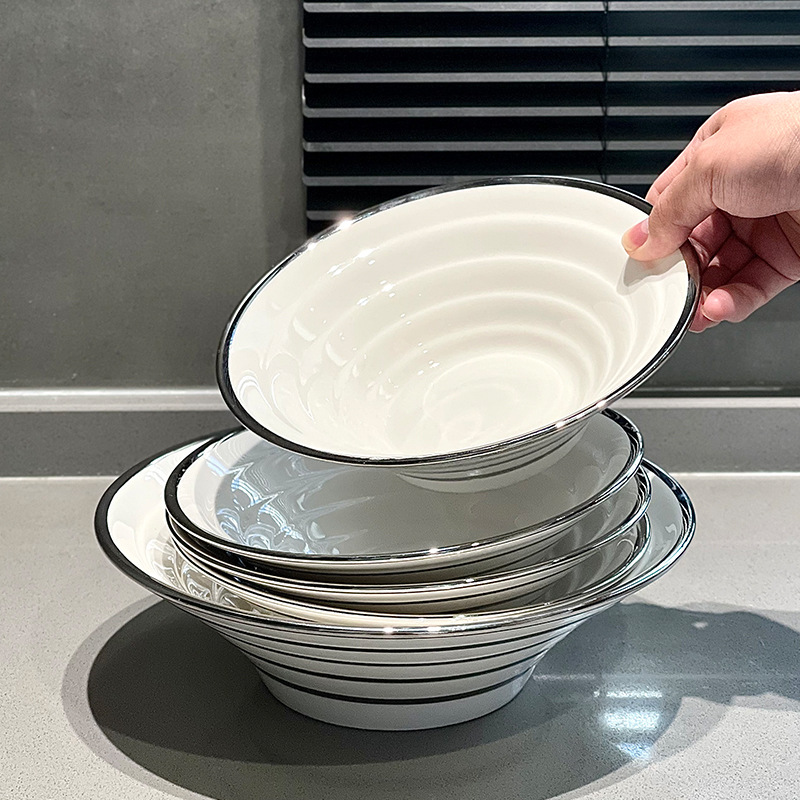 轻奢风陶瓷碗拉面碗家用拌面碗斗笠牛肉汤面碗饺子碗水果沙拉碗