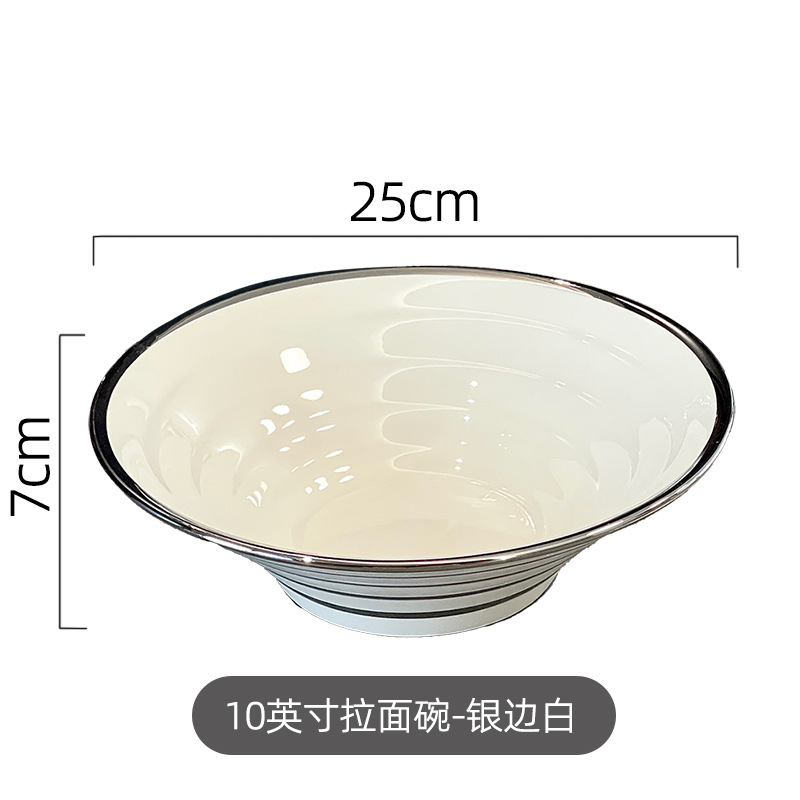 10英寸拉面碗-银边白