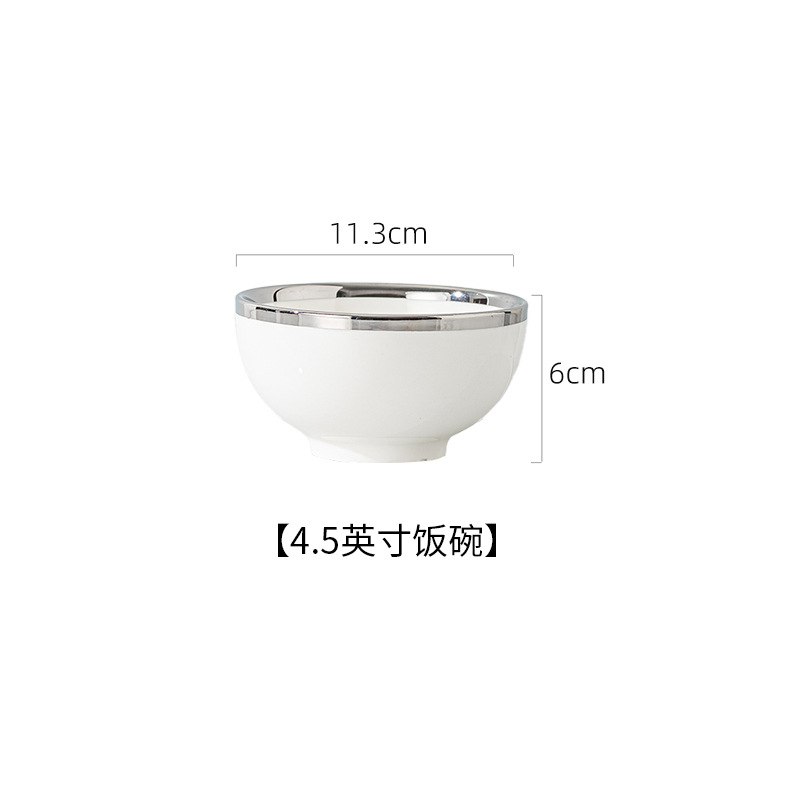 高颜值陶瓷碗米饭碗吃饭碗 轻奢银白汤面碗家用小碗甜品碗调料碗