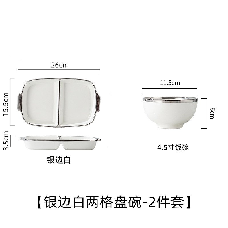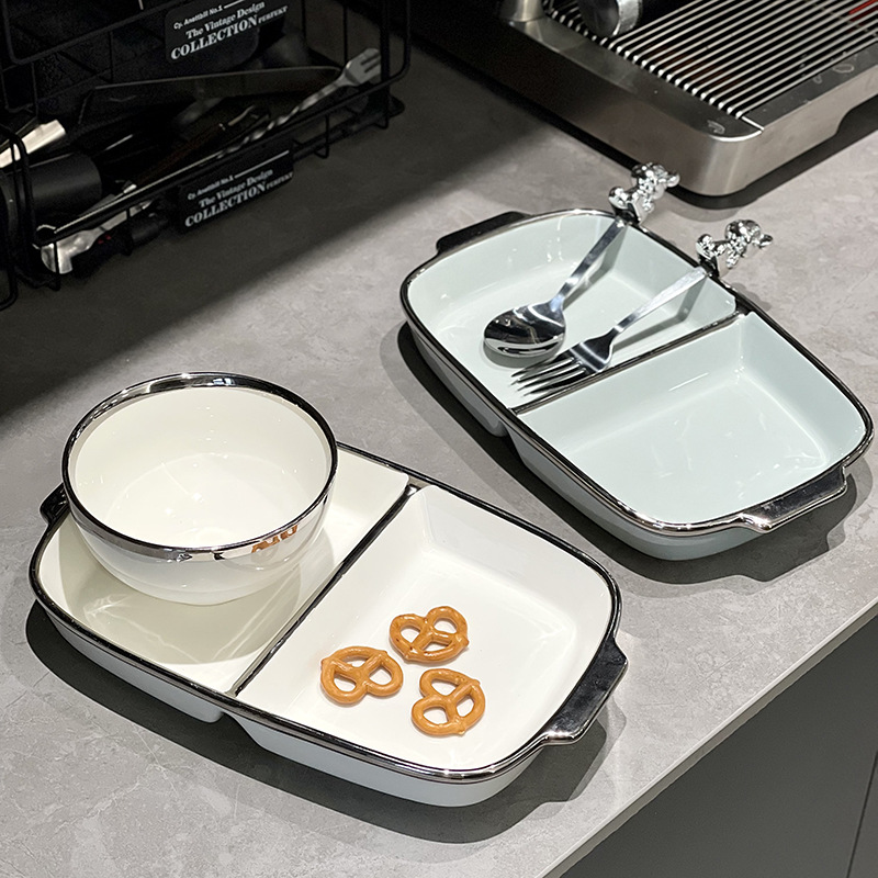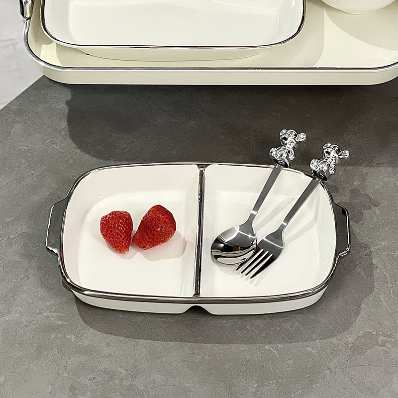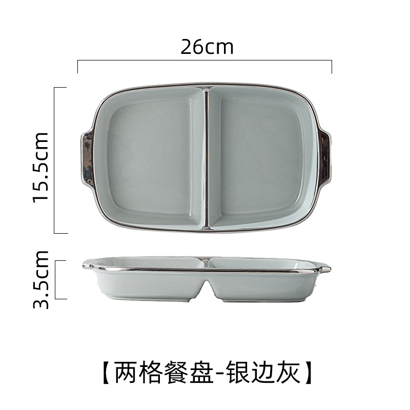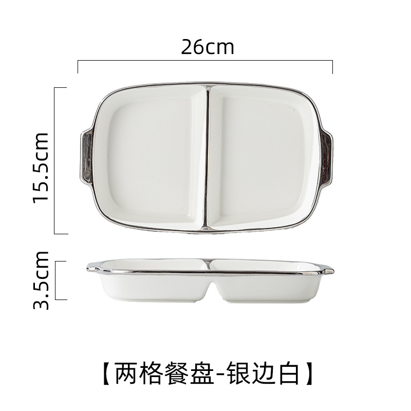 陶瓷大人银边分格餐盘减肥专用高级感轻奢分隔盘子两格餐盘减脂