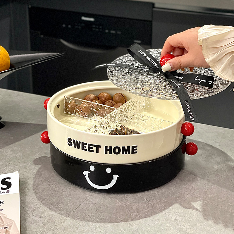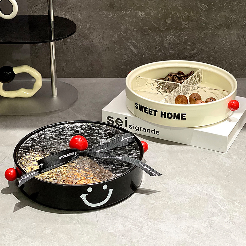 高颜值女生可爱干果盘乔迁新居客厅茶几零食小吃盘分格盘家用盘子