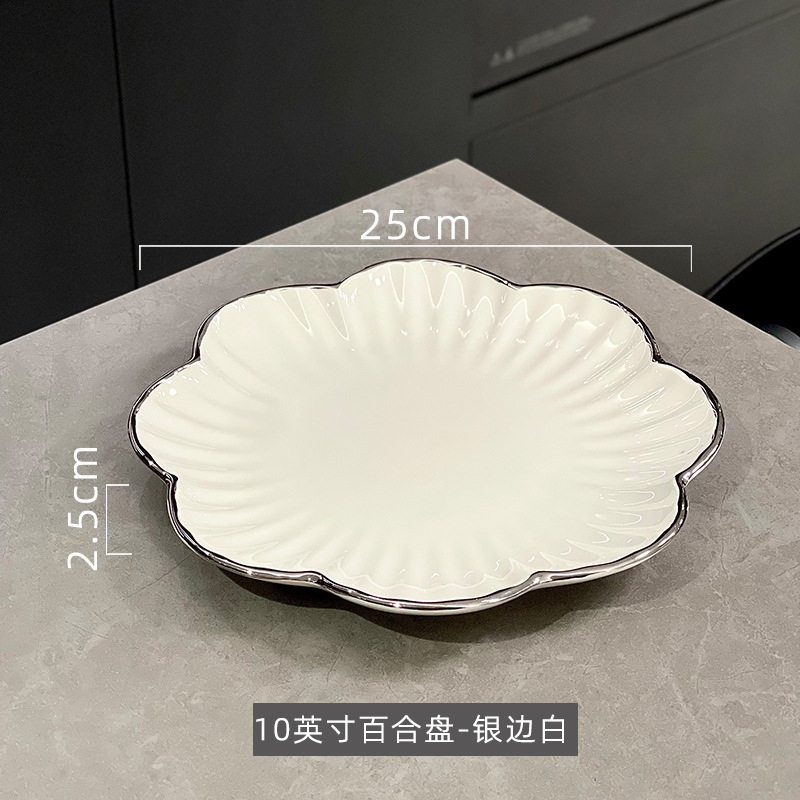 10英寸百合盘-银边白