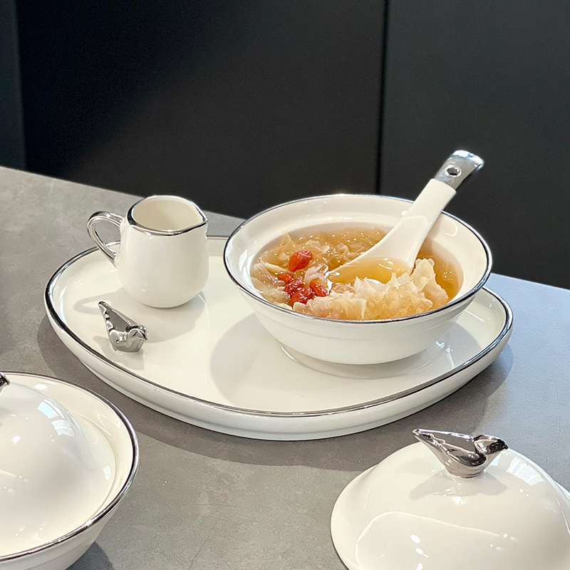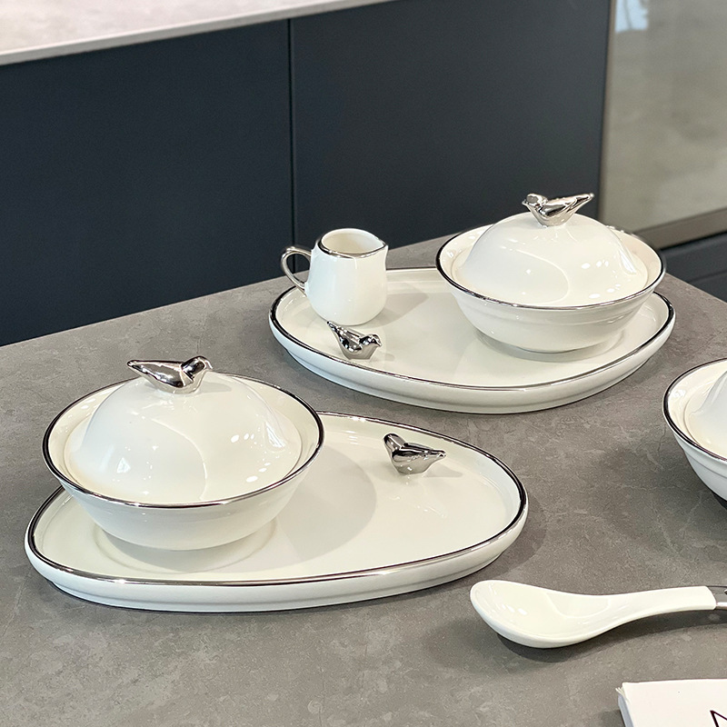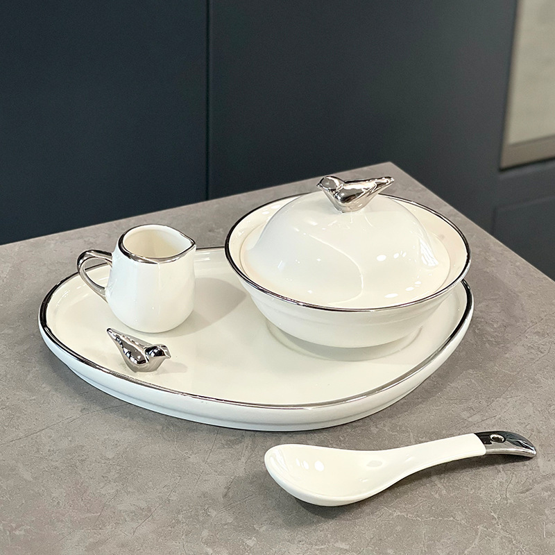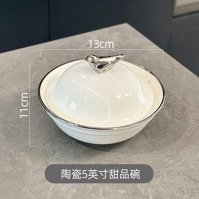 高级感陶瓷碗带盖 创意女生甜品碗养生燕窝碗家用汤碗早餐碗套装