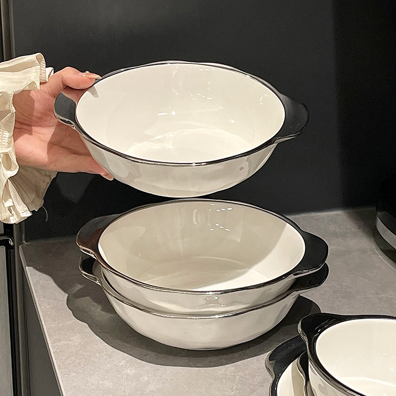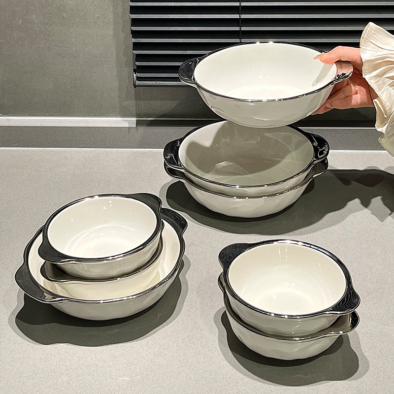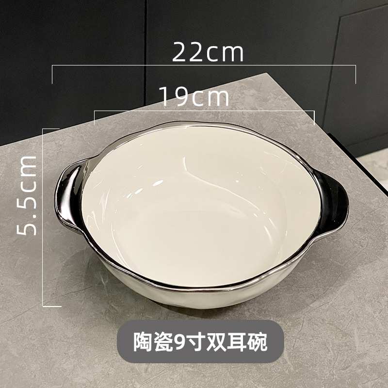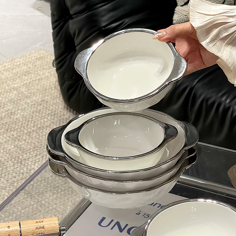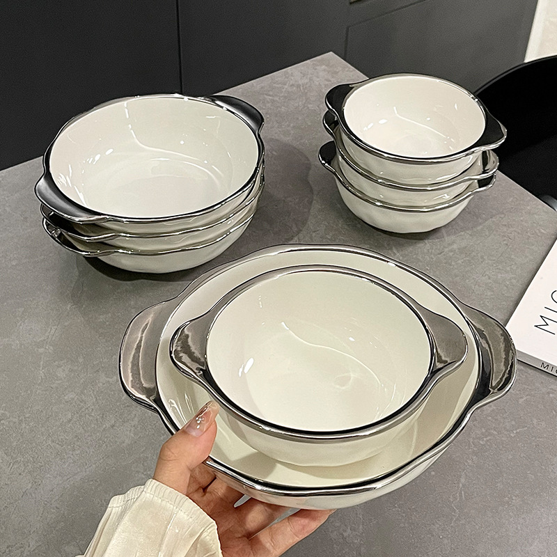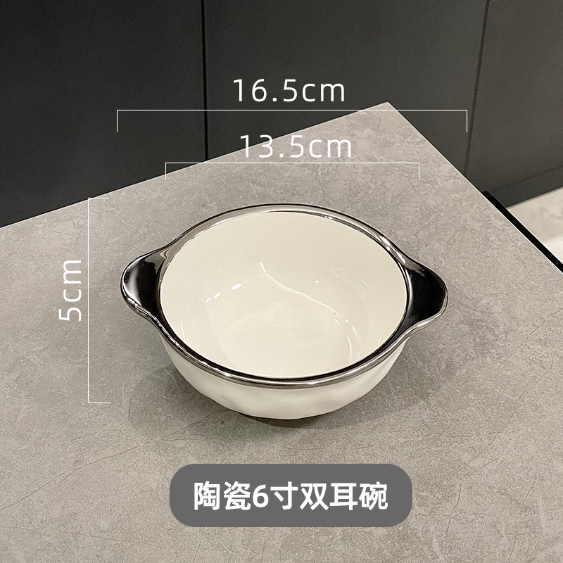 创意双耳汤碗粥碗甜品碗陶瓷碗家用吃饭碗米饭碗调料碗装配菜小碗