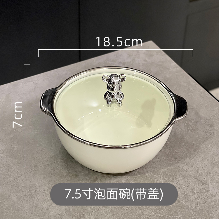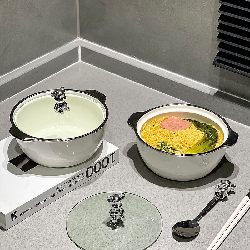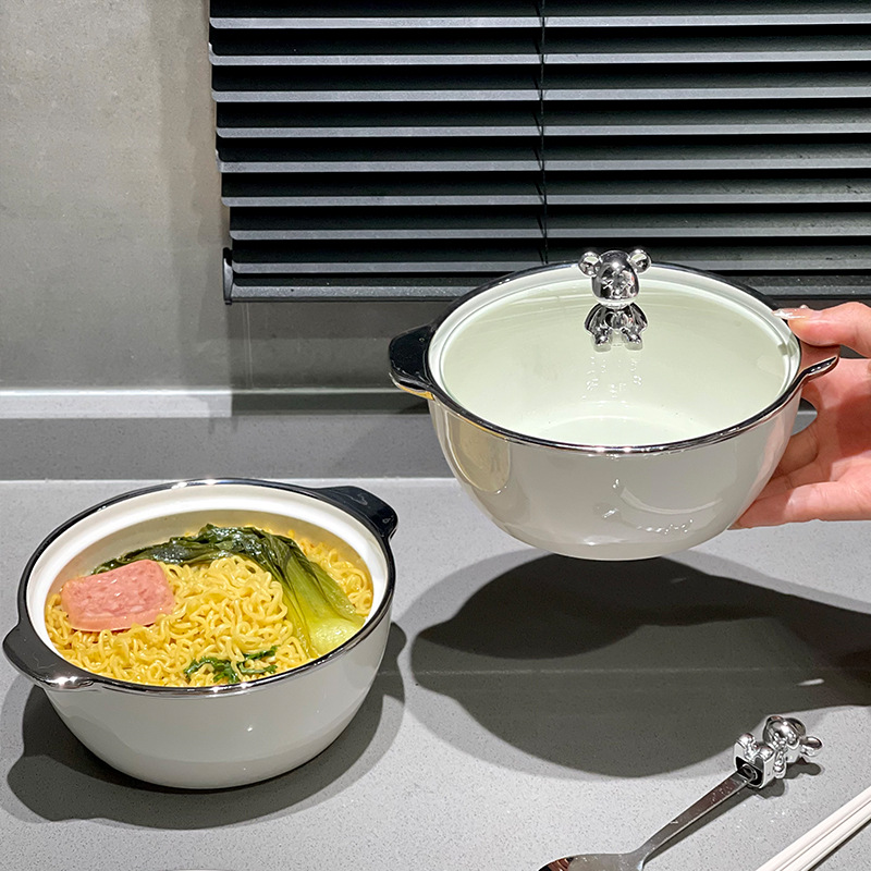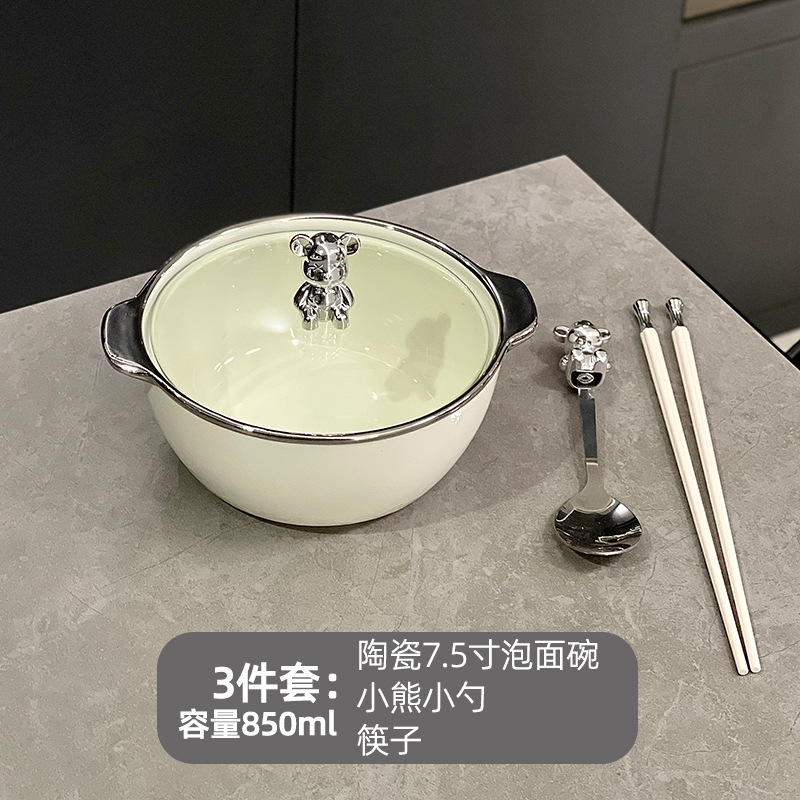 网红泡面碗带盖勺大号家用高颜值女生可爱陶瓷碗汤面碗水果沙拉碗