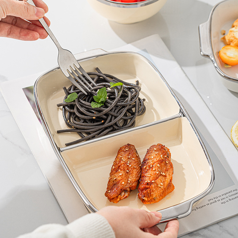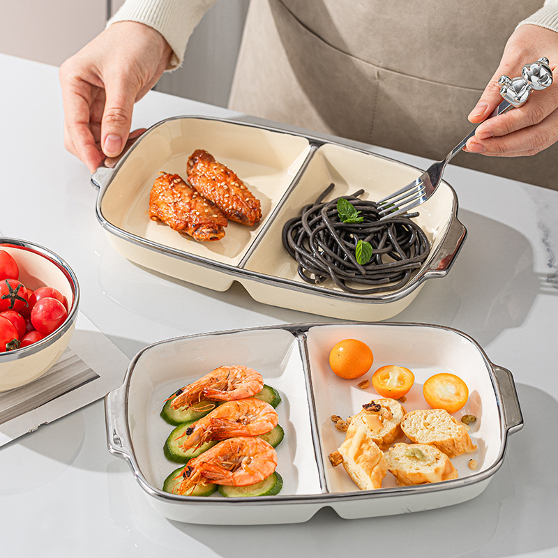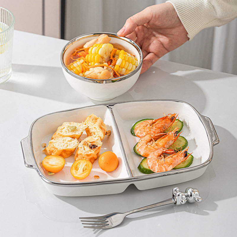 分格餐盘陶瓷大人减肥专用高级感轻奢分隔盘子两格餐盘减脂一人餐