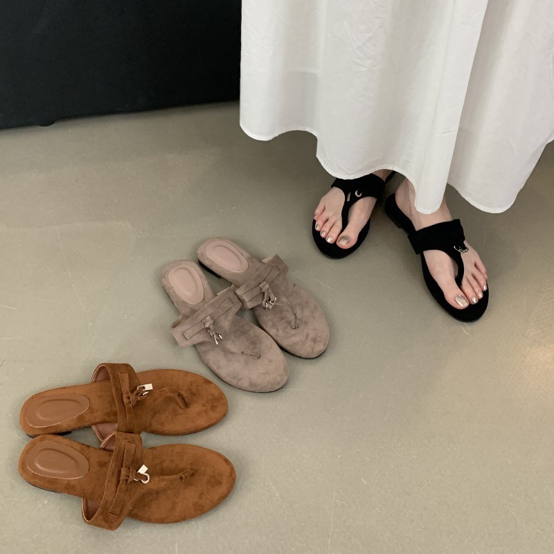 夏季法式吊坠凉拖鞋新款外穿平跟懒人一字拖穆勒鞋女
