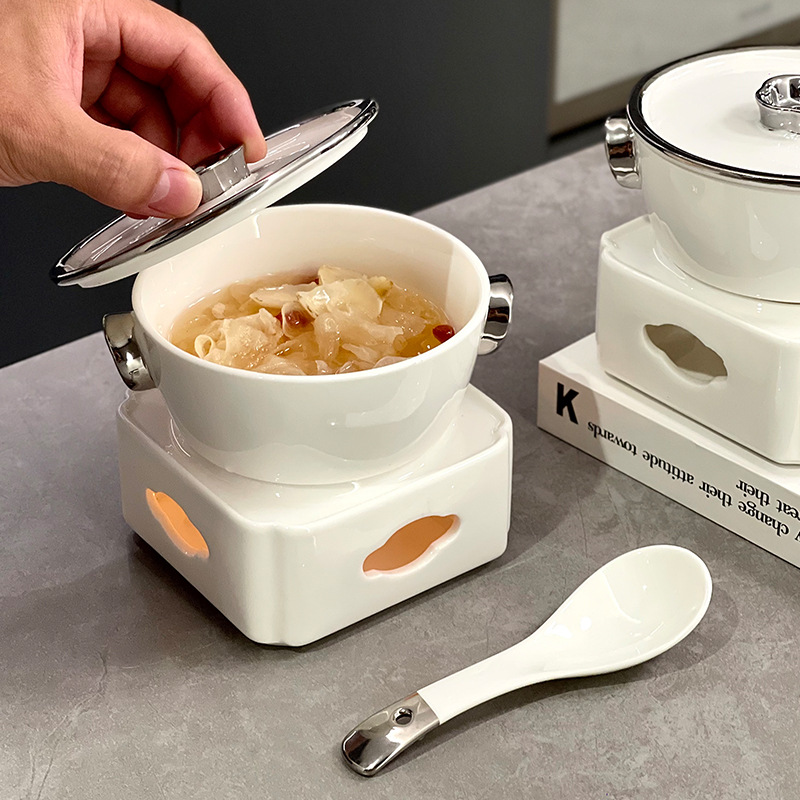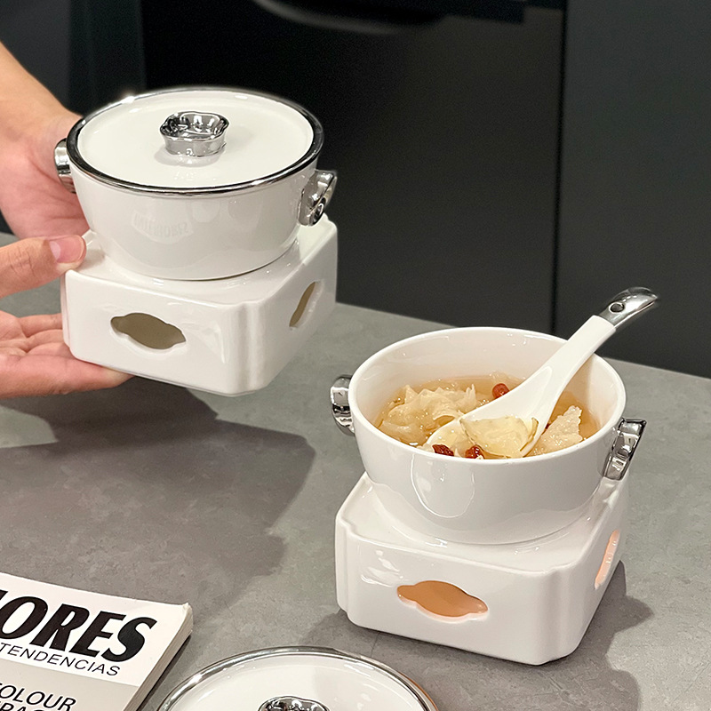 双耳炖盅燕窝碗带加热炉 高颜值创意商用家用补品鱼胶炖盅汤煲