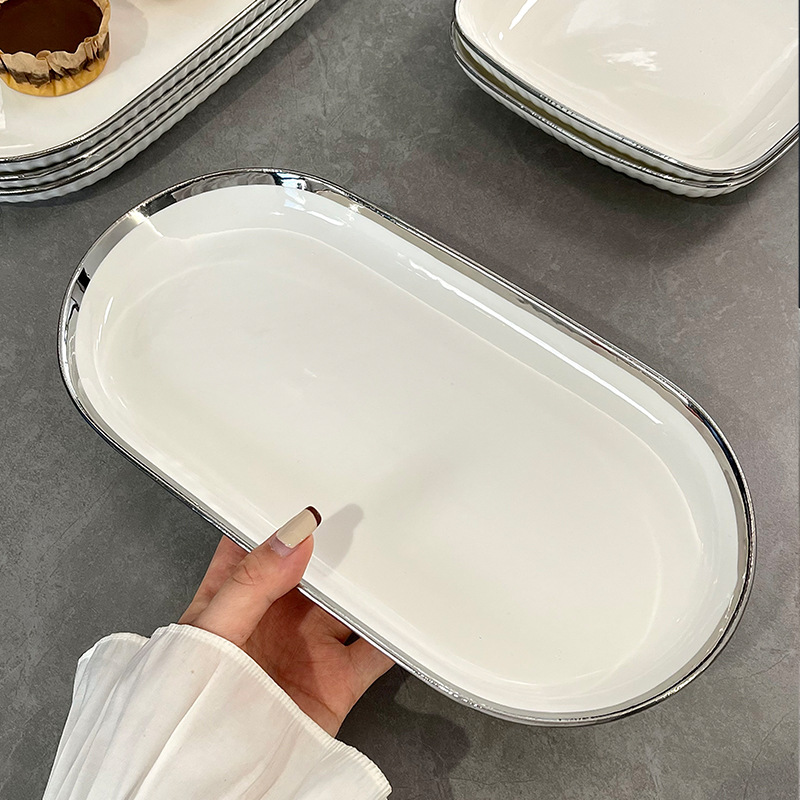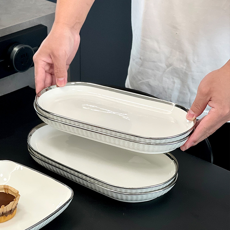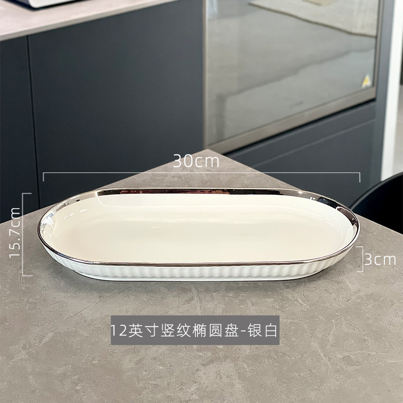 家用陶瓷餐盘装鱼盘创意个性椭圆形菜盘高颜值大尺寸蒸鱼盘