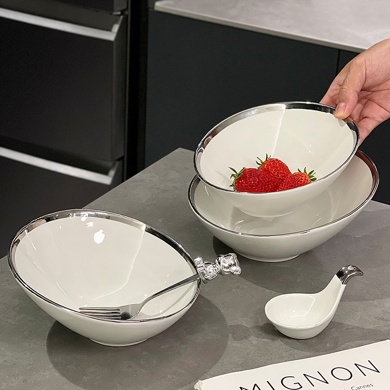 ins创意水果沙拉碗汤碗家用纯白色高级感女生甜品碗陶瓷碗
