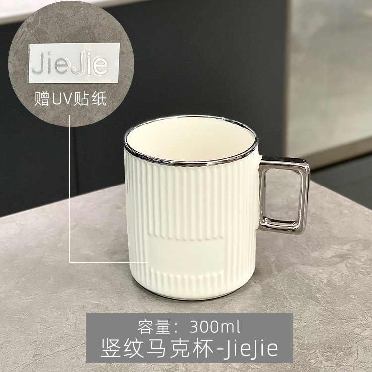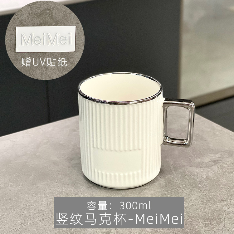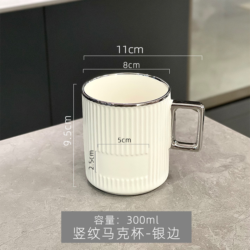 - 竖纹马克杯-银边