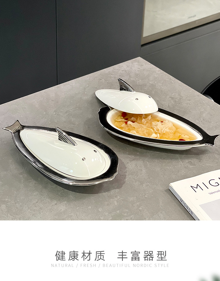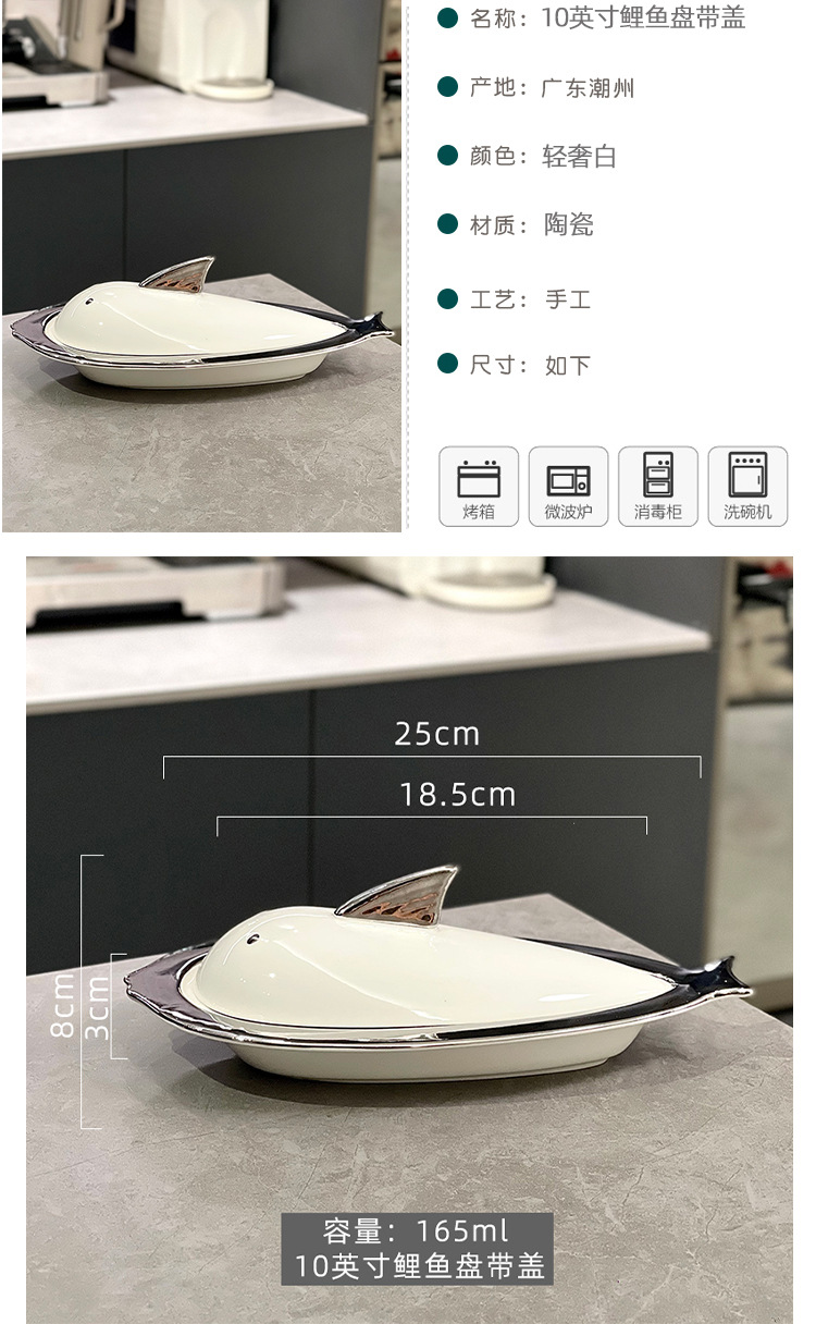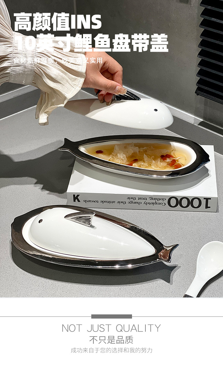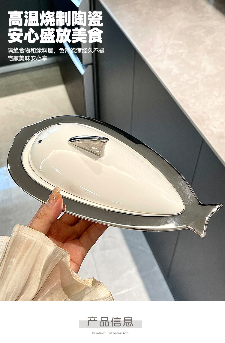 鱼盘装鱼盘子带加热底座保温创意陶瓷盘大容量多功能菜盘汤盘