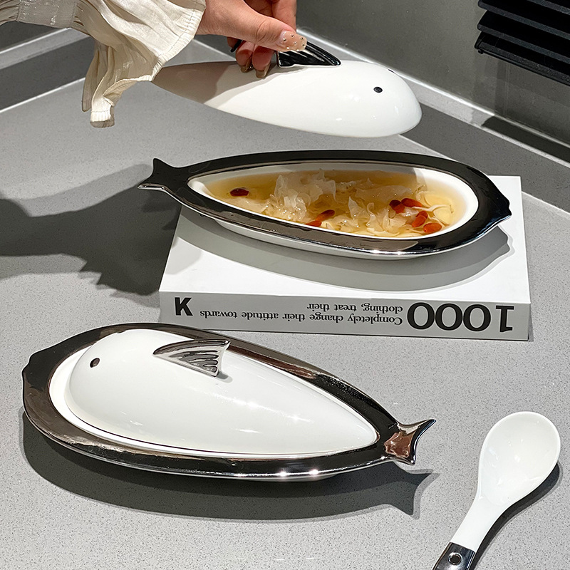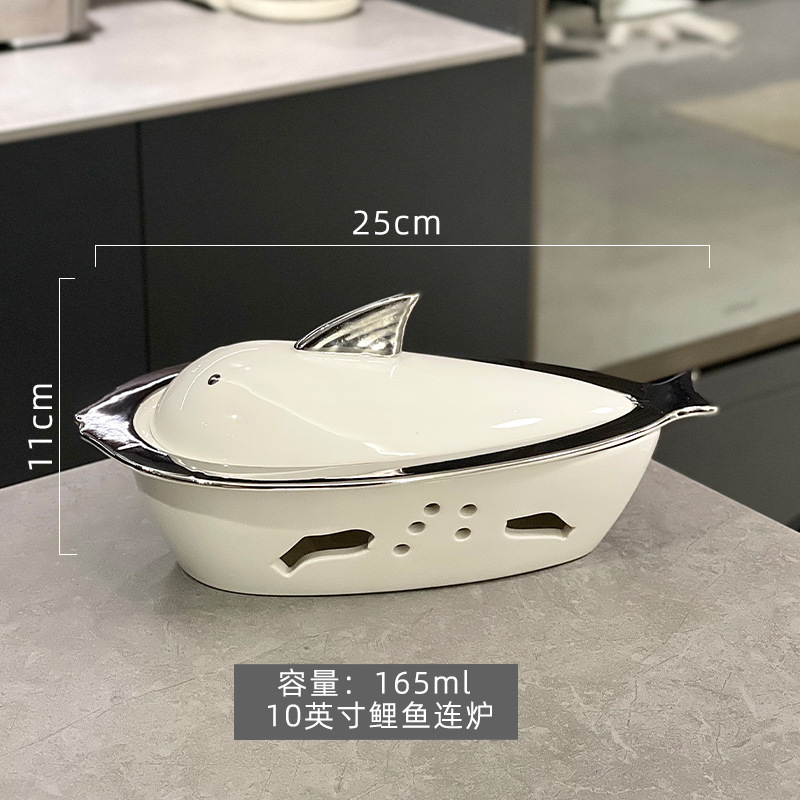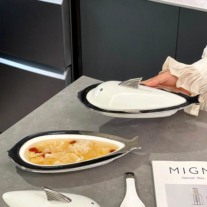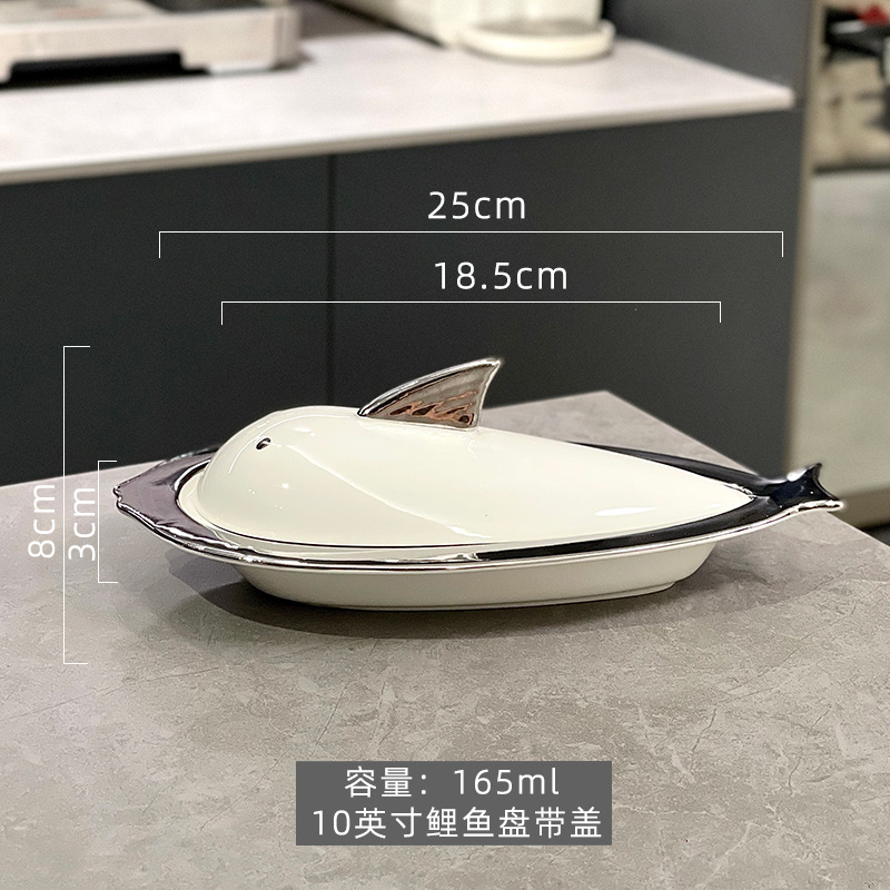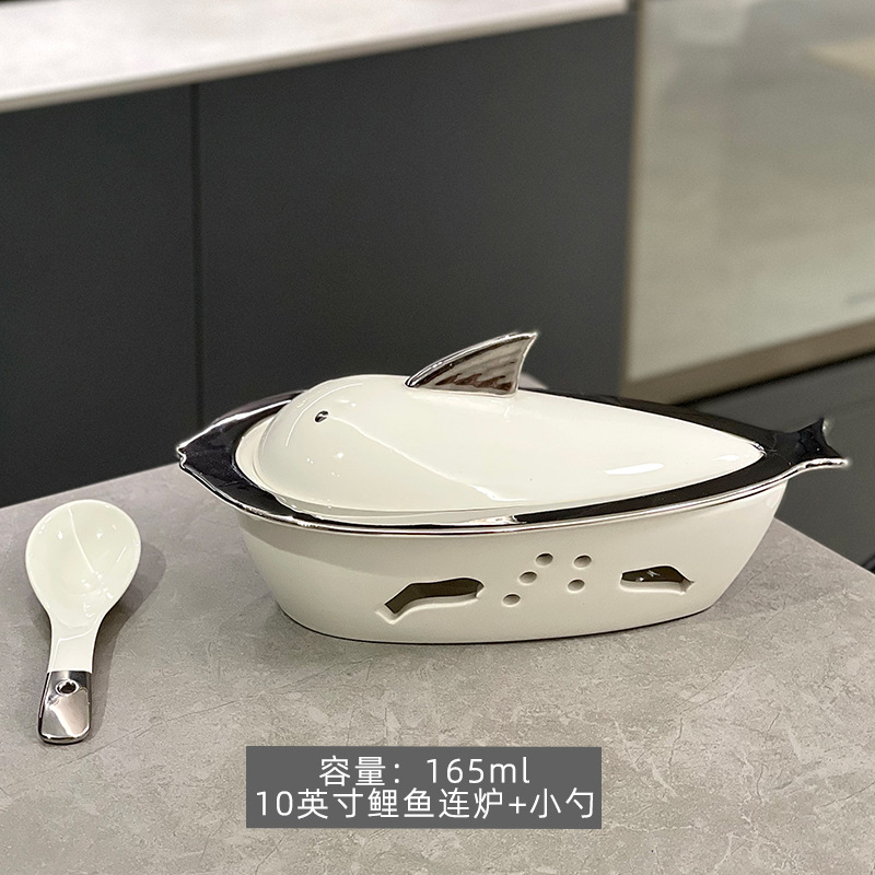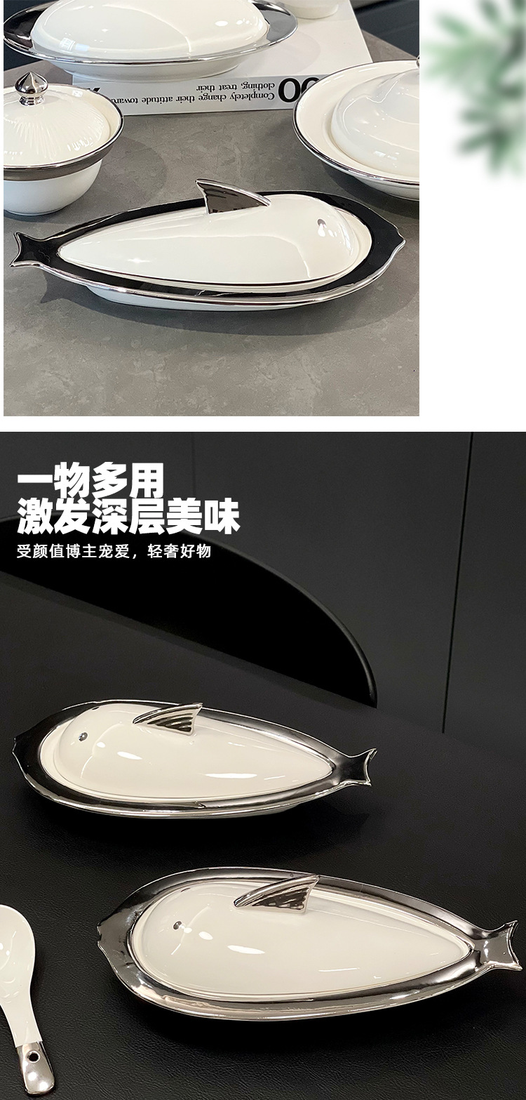 鱼盘装鱼盘子带加热底座保温创意陶瓷盘大容量多功能菜盘汤盘