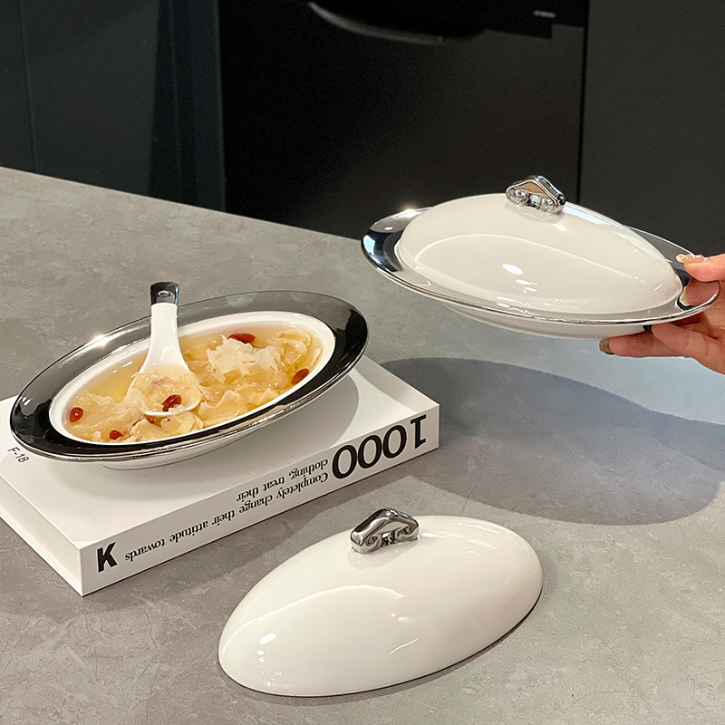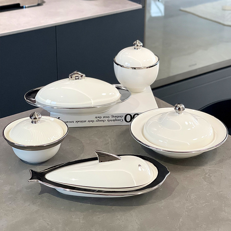 可加热陶瓷盘装鱼盘子海鲜盘汤盘保温盘家用创意菜盘餐具套装